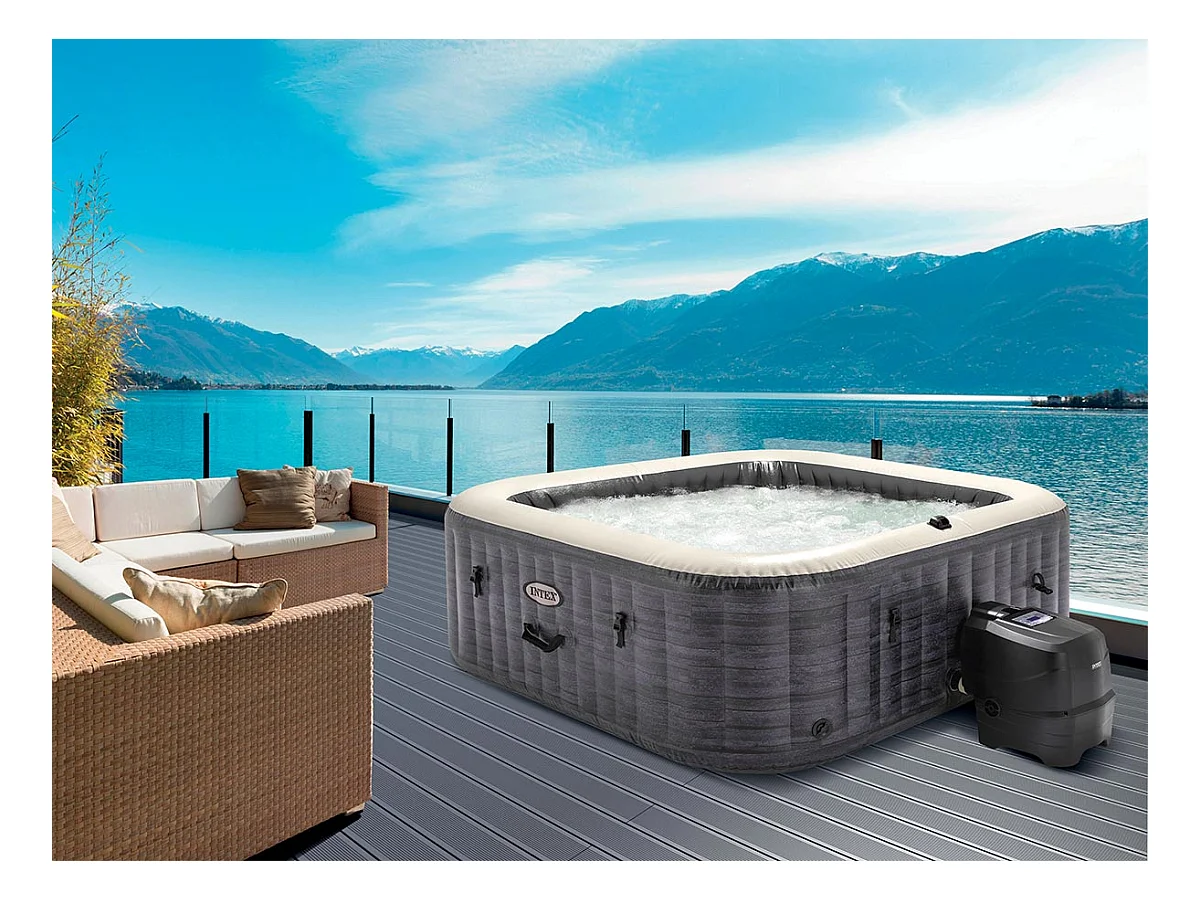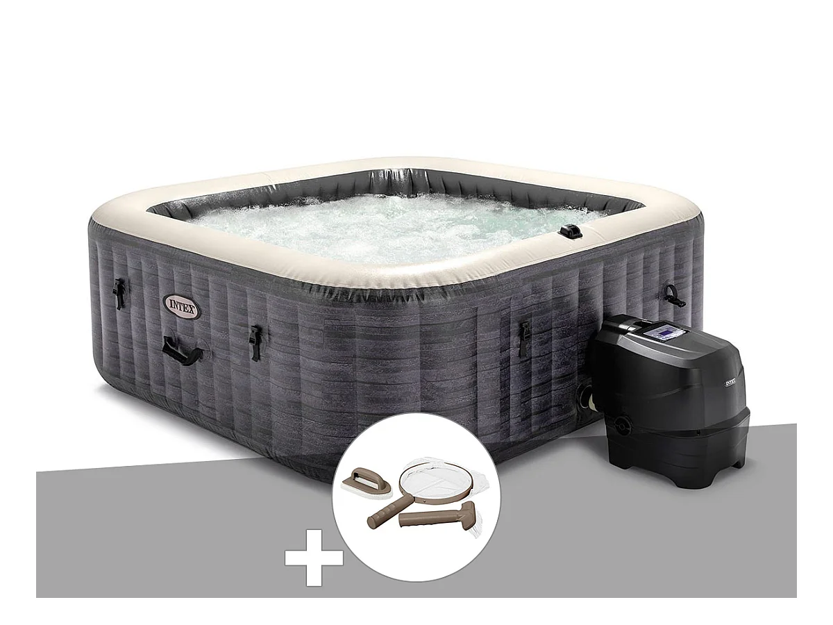 Kit spa gonflable Intex PureSpa Ardoise carré Bulles 6 places + Kit d'entretien