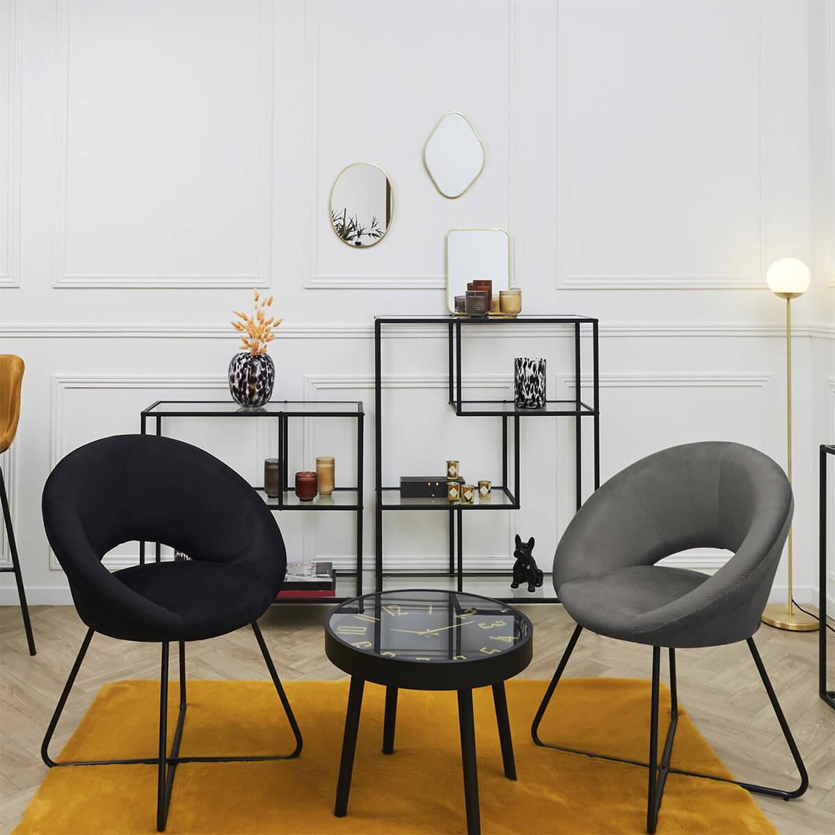 Fauteuil design arrondi en tissu pieds métal noir MOGI