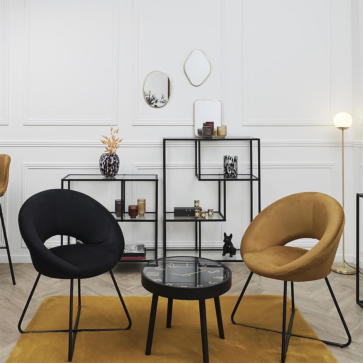 KONAE - Fauteuil Rond Ajouré en Velours Côtelé Ocre