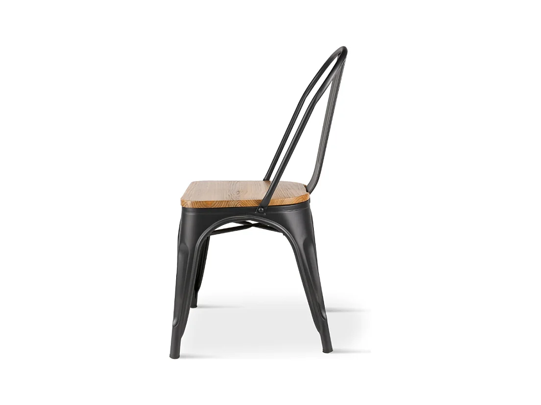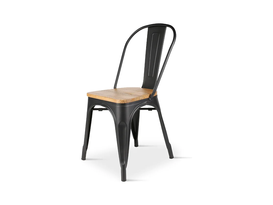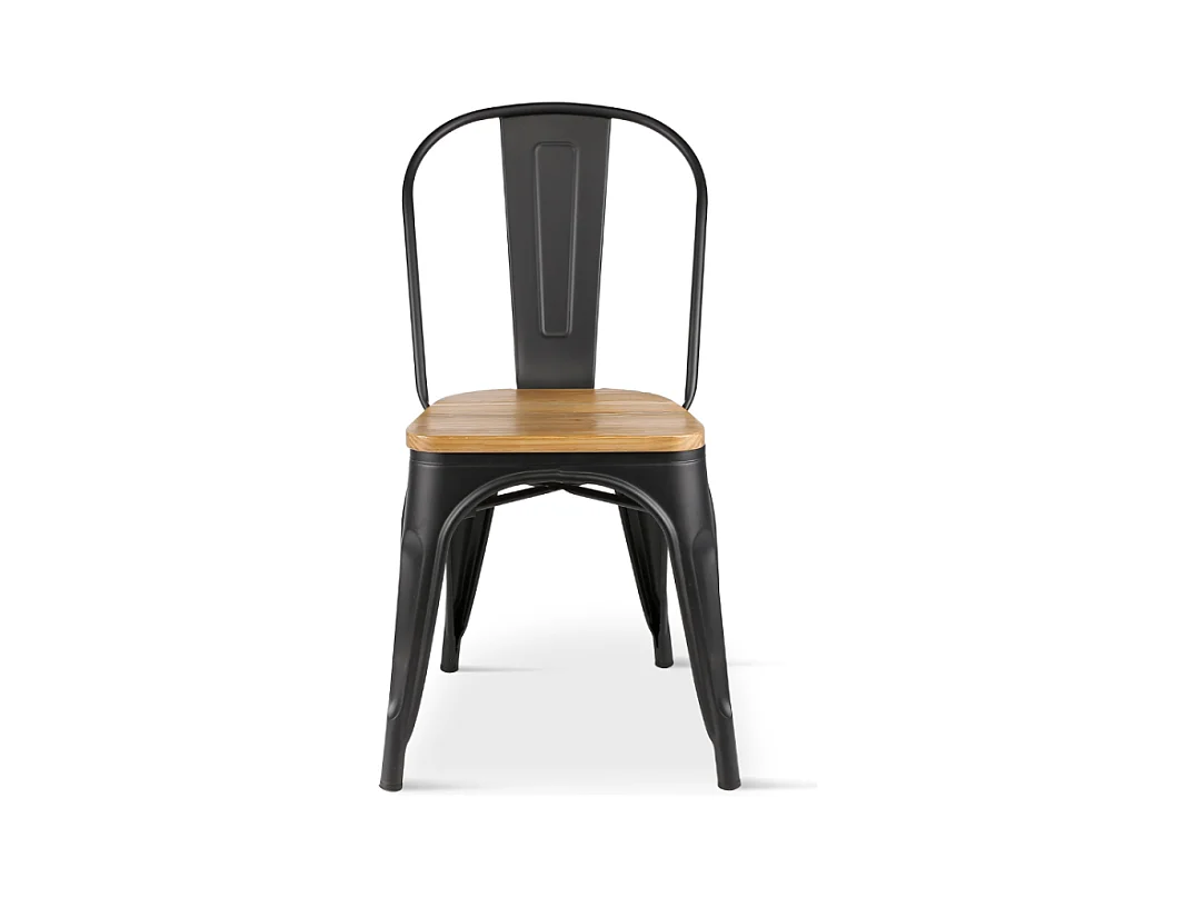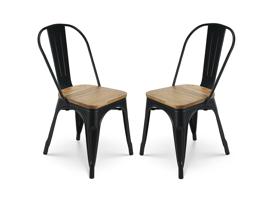 KOSMI - Lot de 2 chaises en métal noir mat et assise en bois clair - Style Industriel