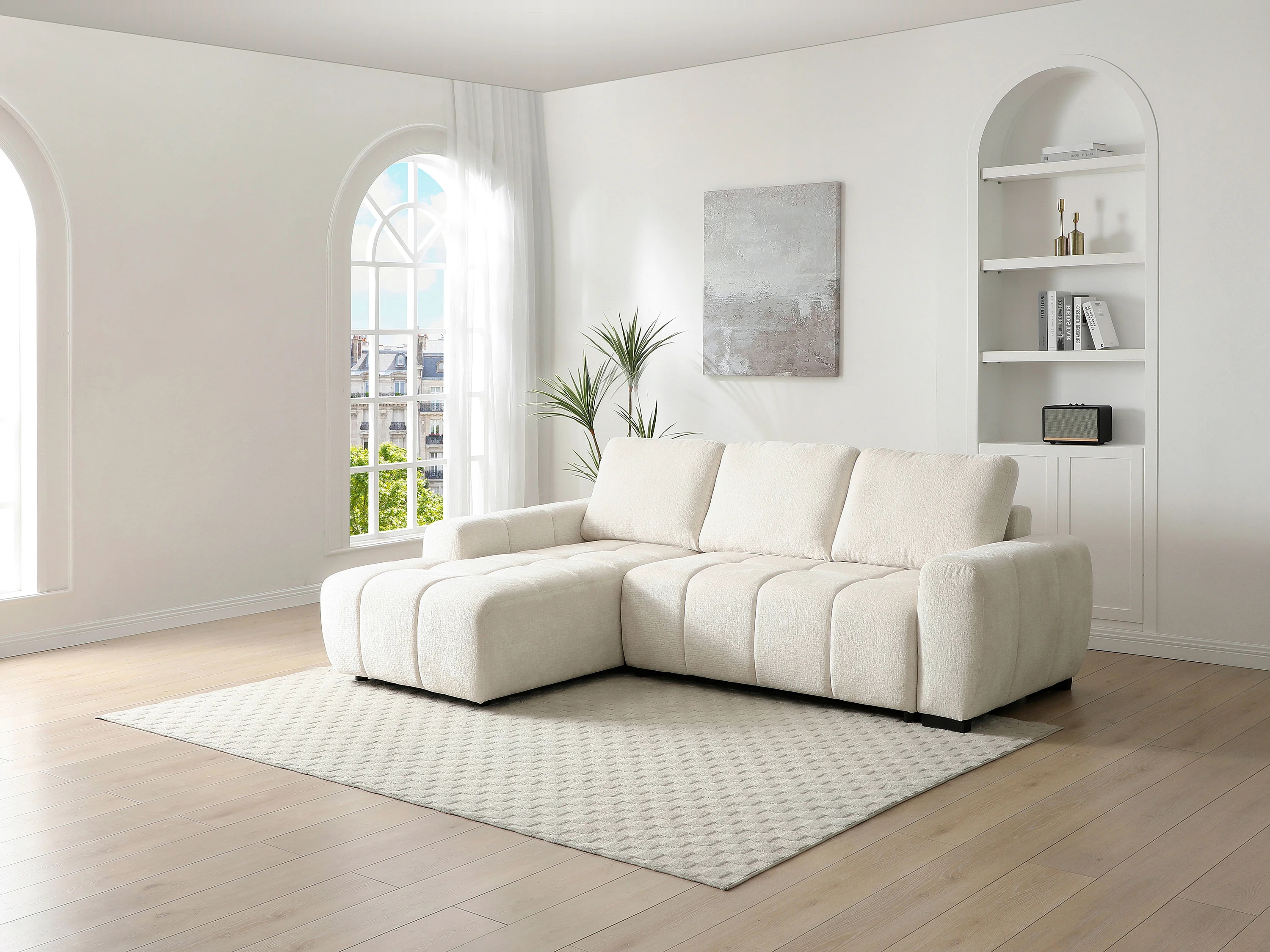 Canapé d'angle gauche convertible en tissu chenille beige KOUMALO