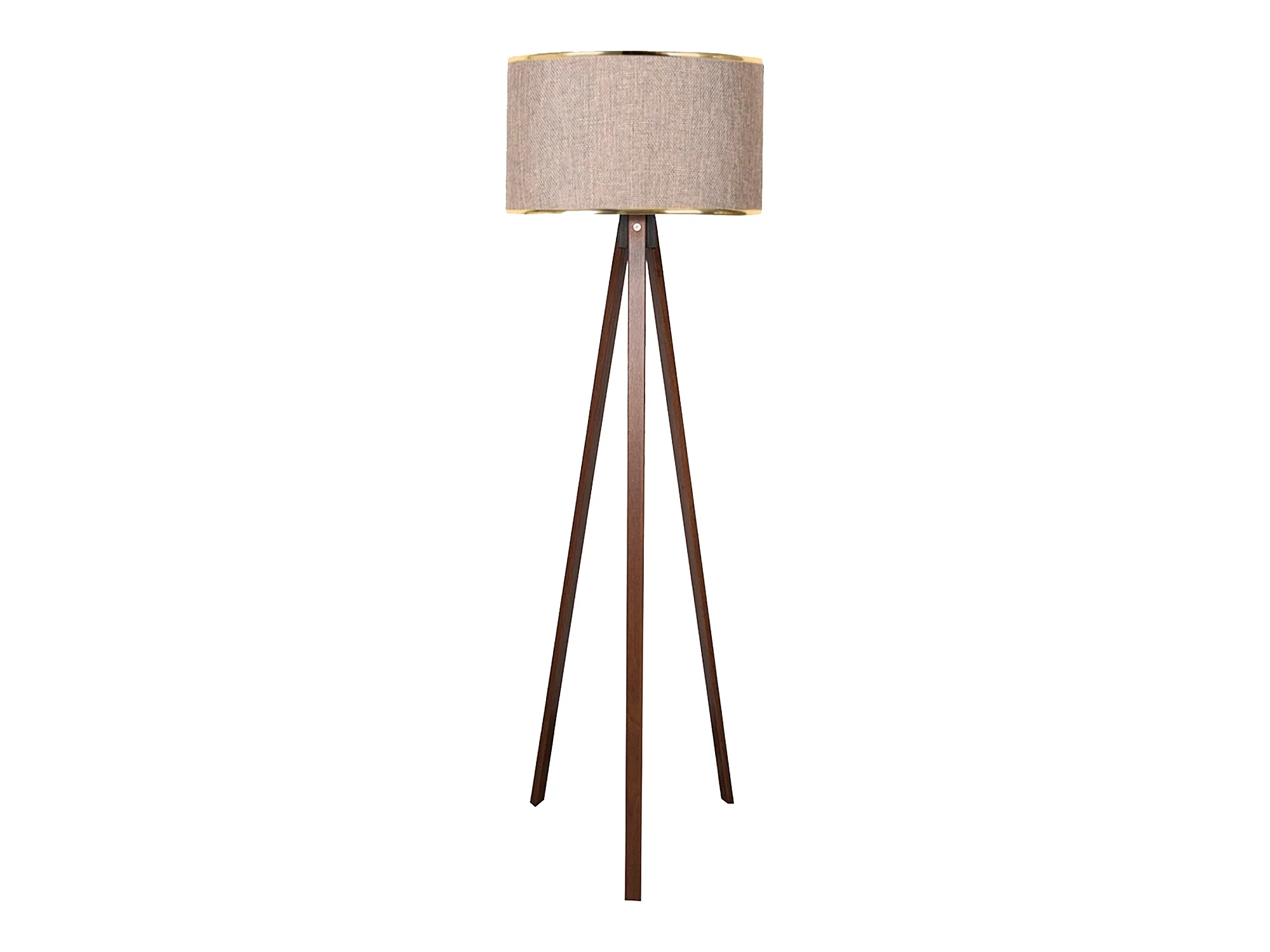 Lampadaire trépied effet bois noyer, abat-jour gris KILIS