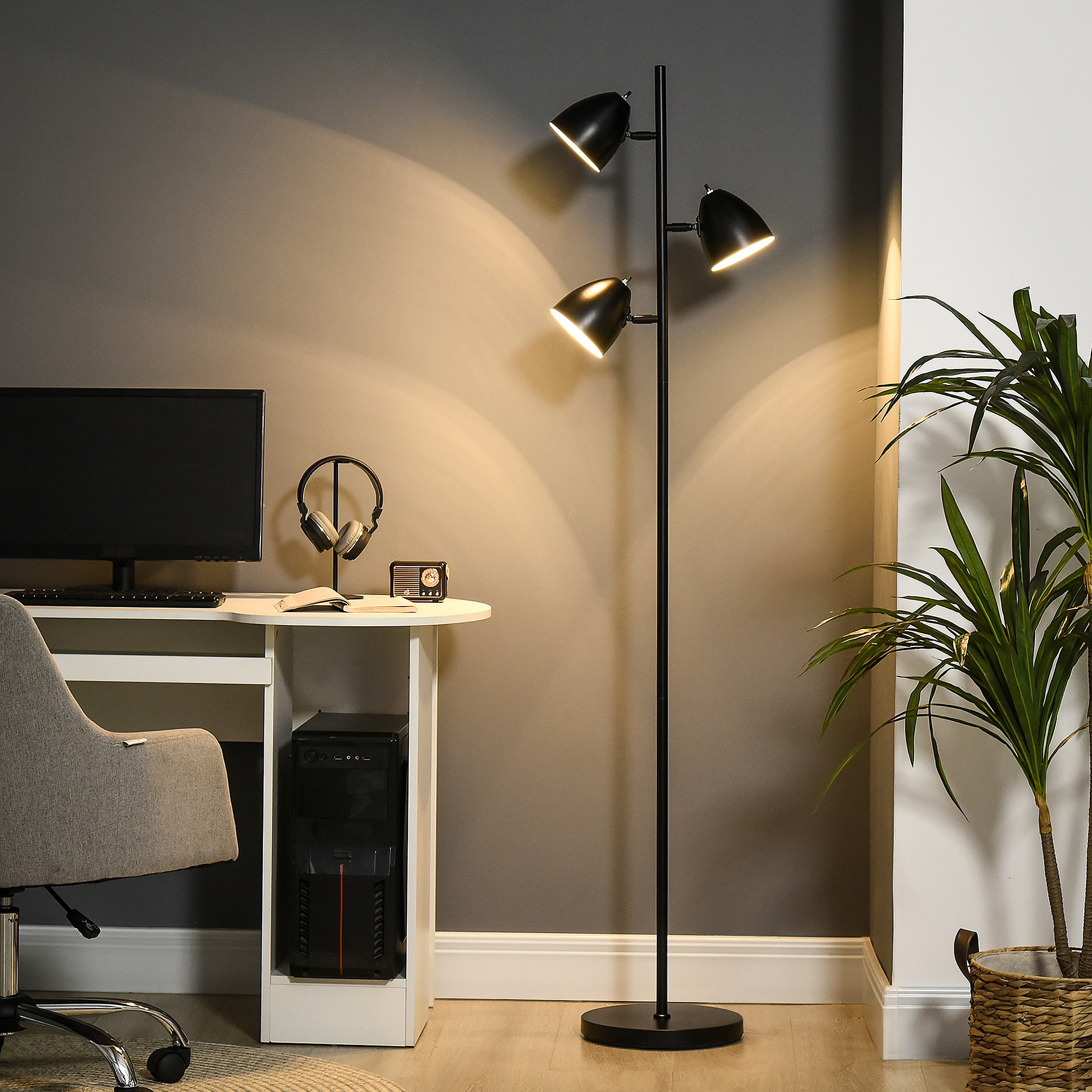 Lampadaire design industriel 3 ampoules max. 40 W abats-jours orientables acier noir