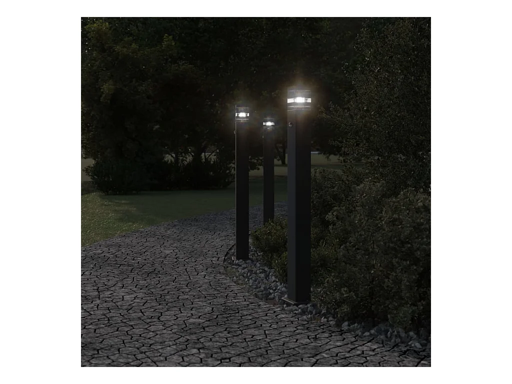 Lampadaires d'extérieur 3 pcs noir 110 cm aluminium FR241968