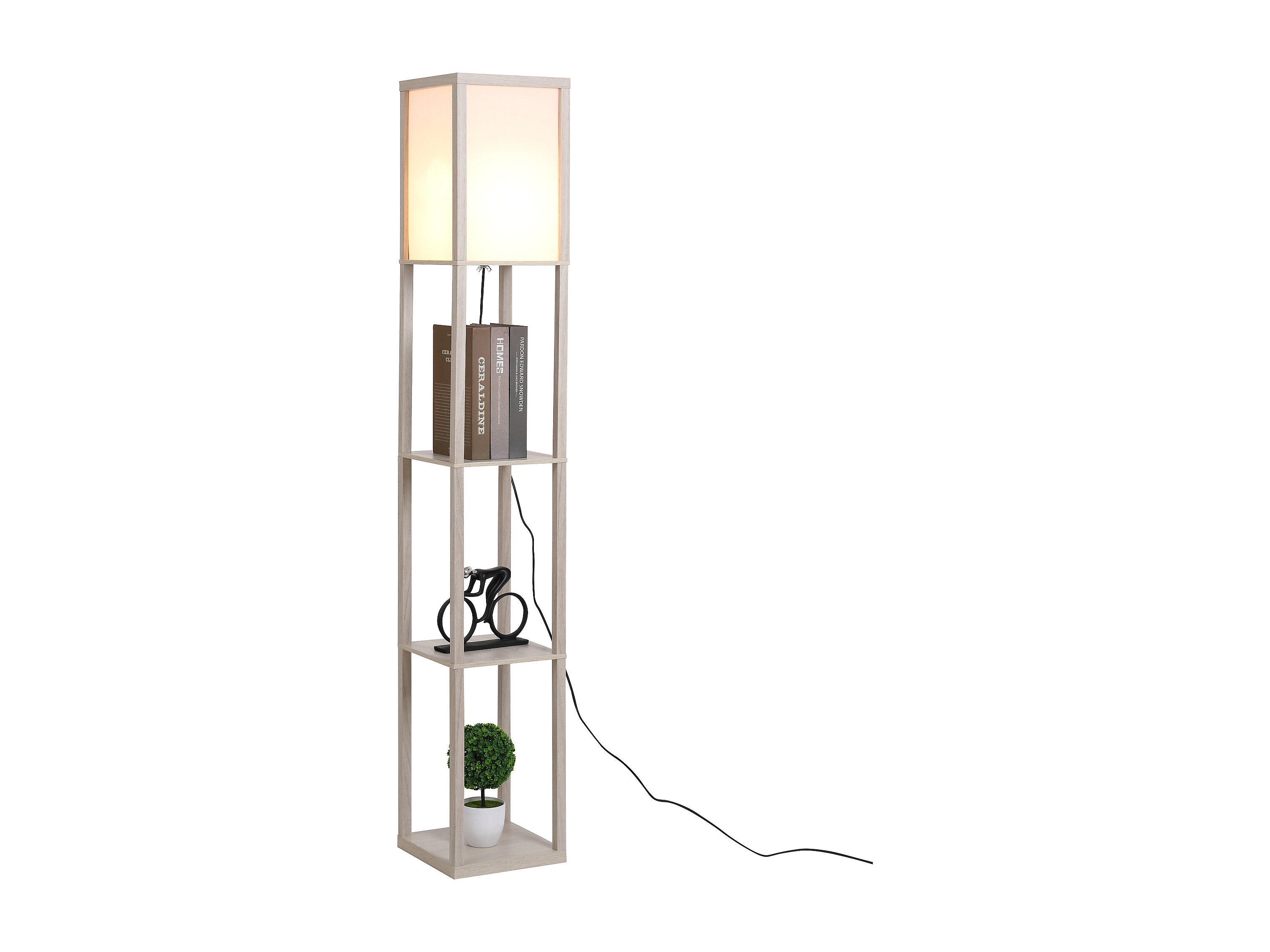 Lampadaire étagère lampe étagère 26L x 26l x 160H cm 3 étagères 4 niveaux MDF gris clair