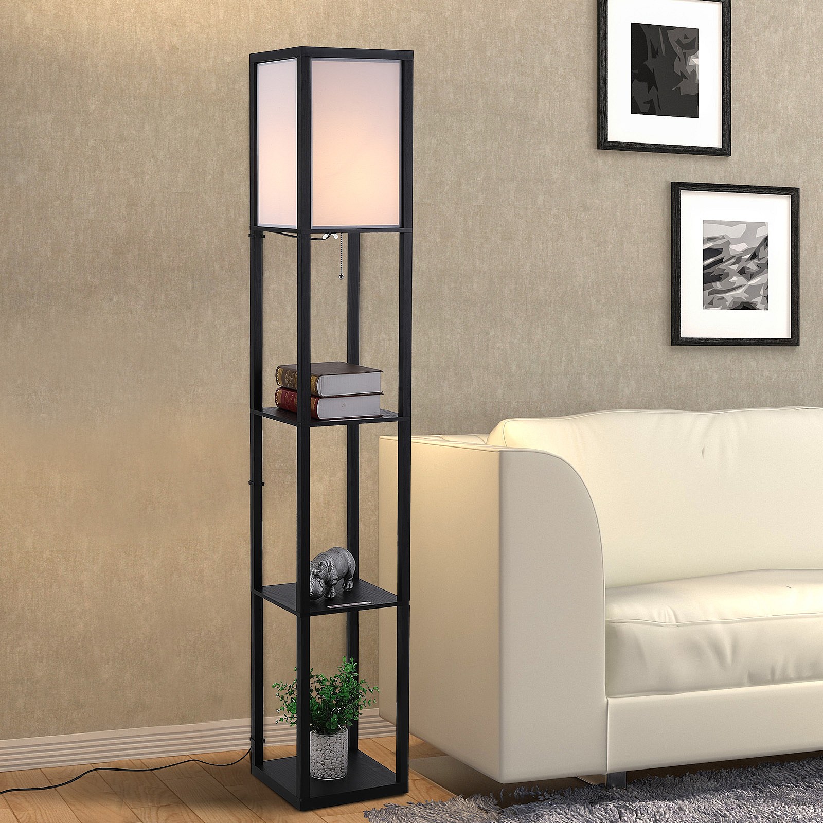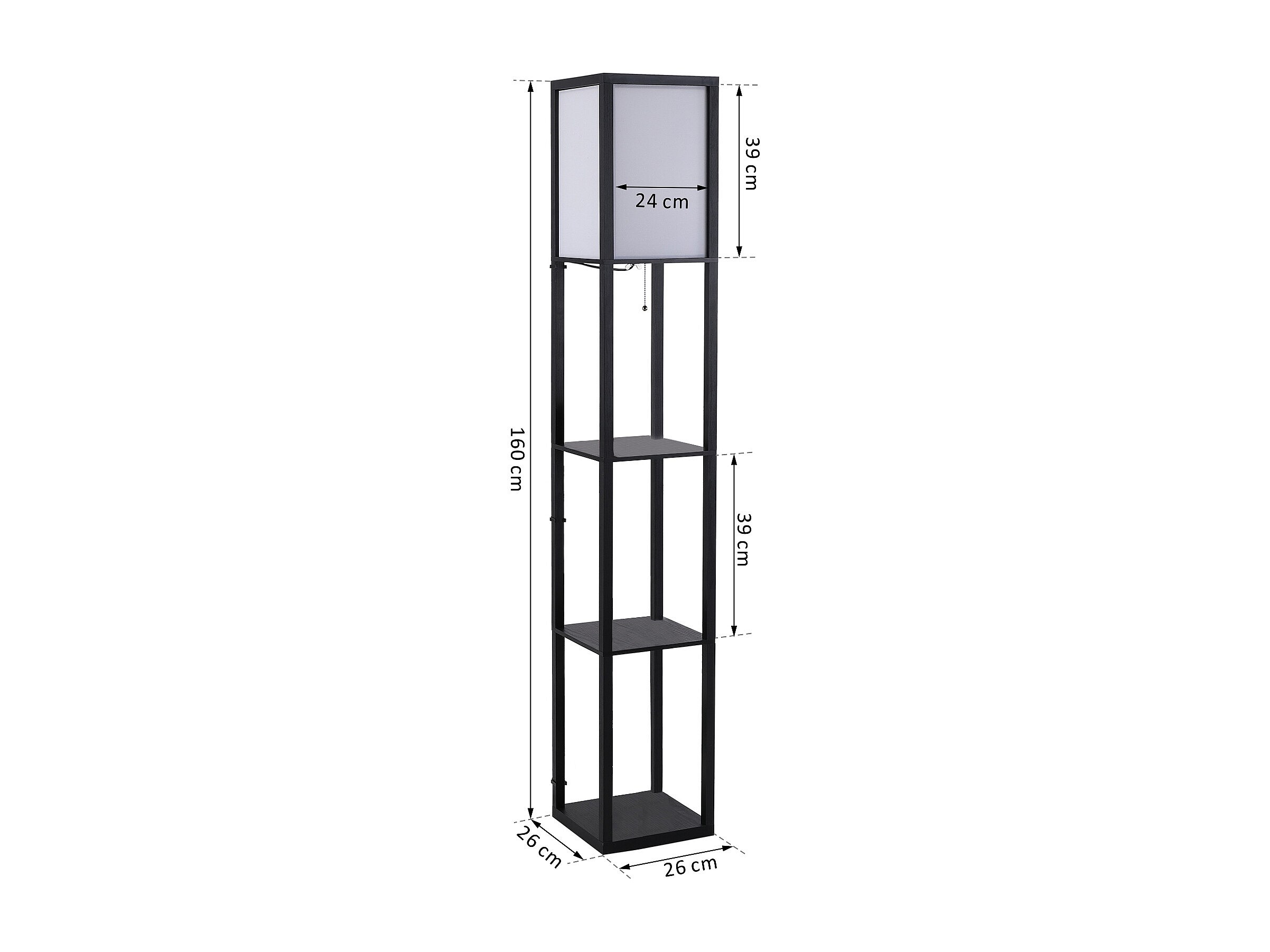 Lampadaire étagère lampe étagère 26L x 26l x 160H cm 3 étagères 4 niveaux MDF noir