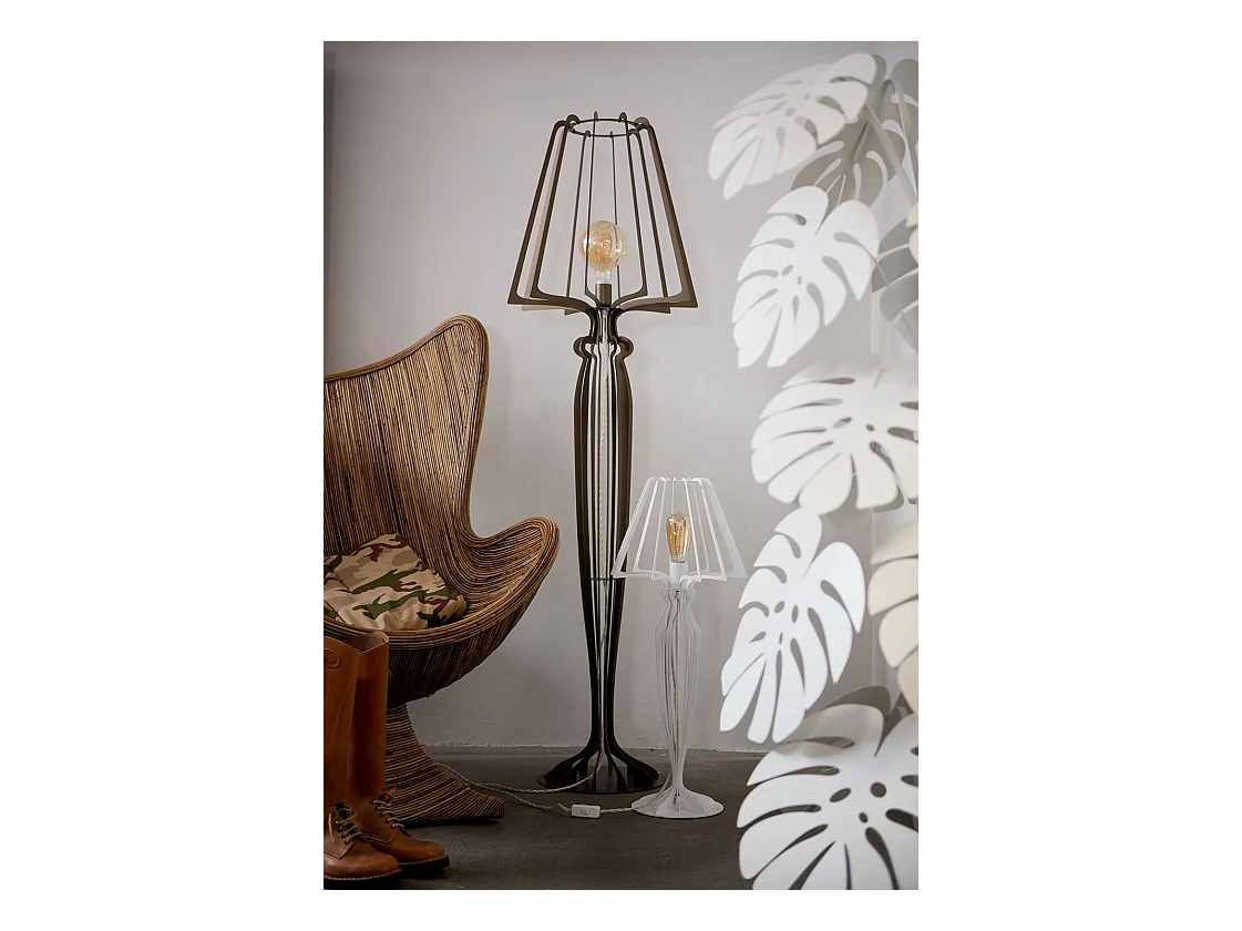 Lampadaire Minerva Ø38x166 cm en fer de style réticulé avec interrupteur au pied Connexion E27 Fabriqué en Italie Noir