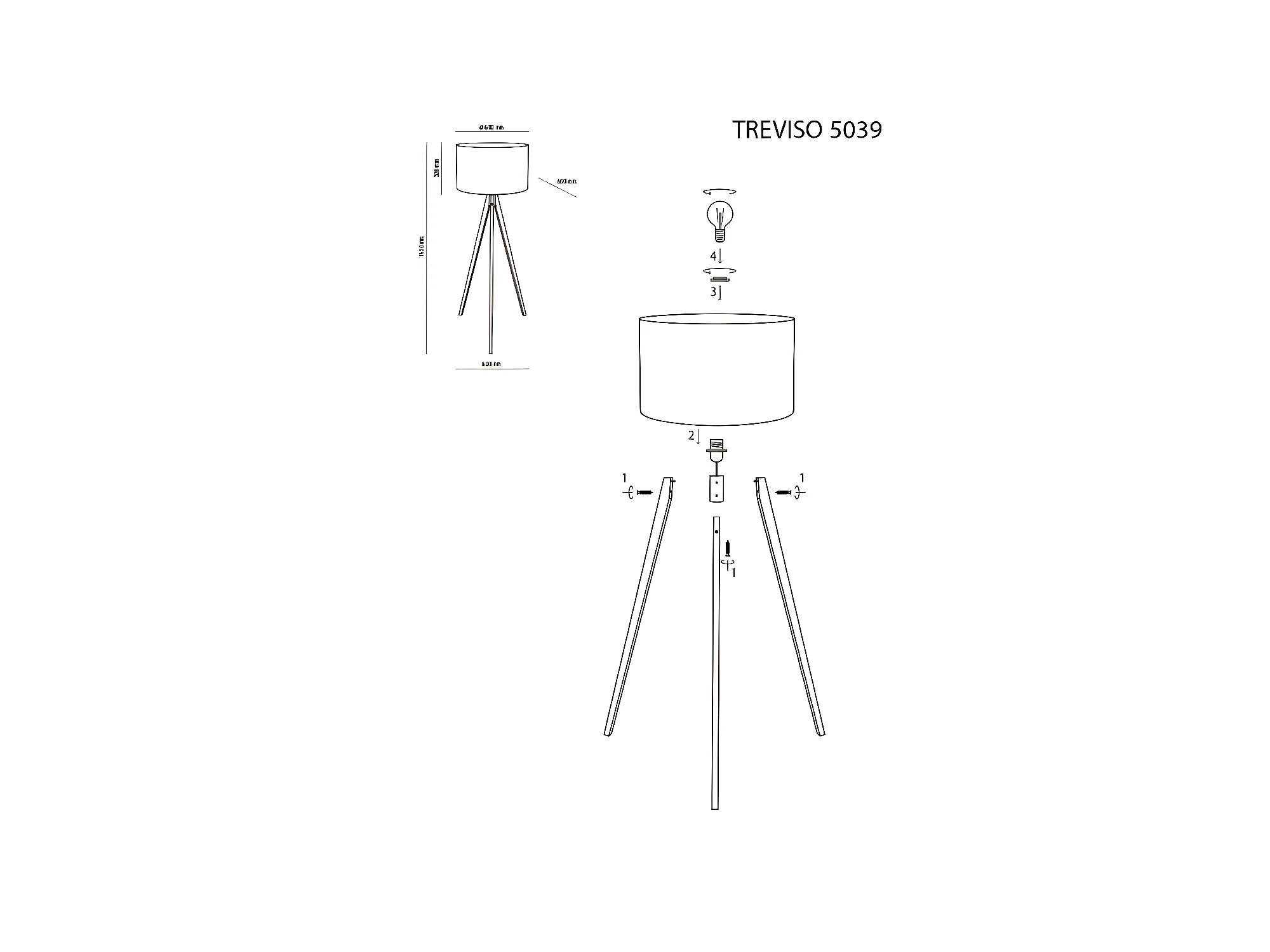 Lampadaire trépied bois - Noir - h145cm - 1xE27 -modèle TREVISO de TK LGIHTING