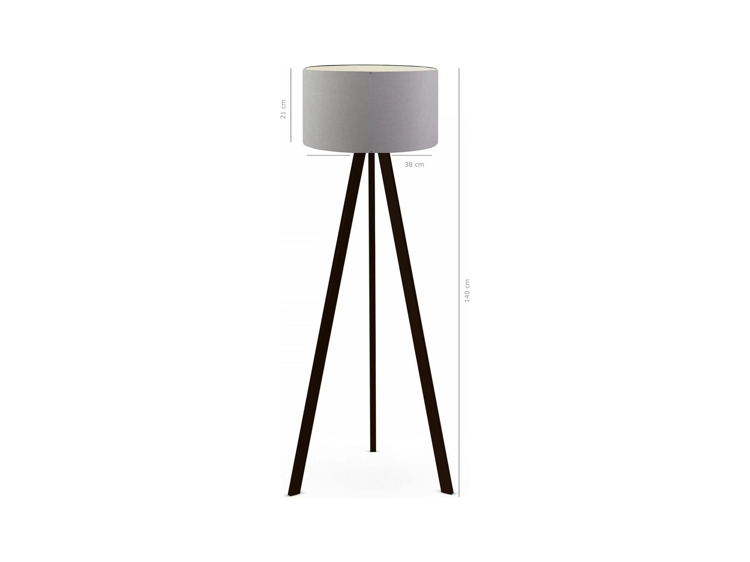 Lampadaire trépied effet bois noir, abat-jour gris Ø38 cm KILIS