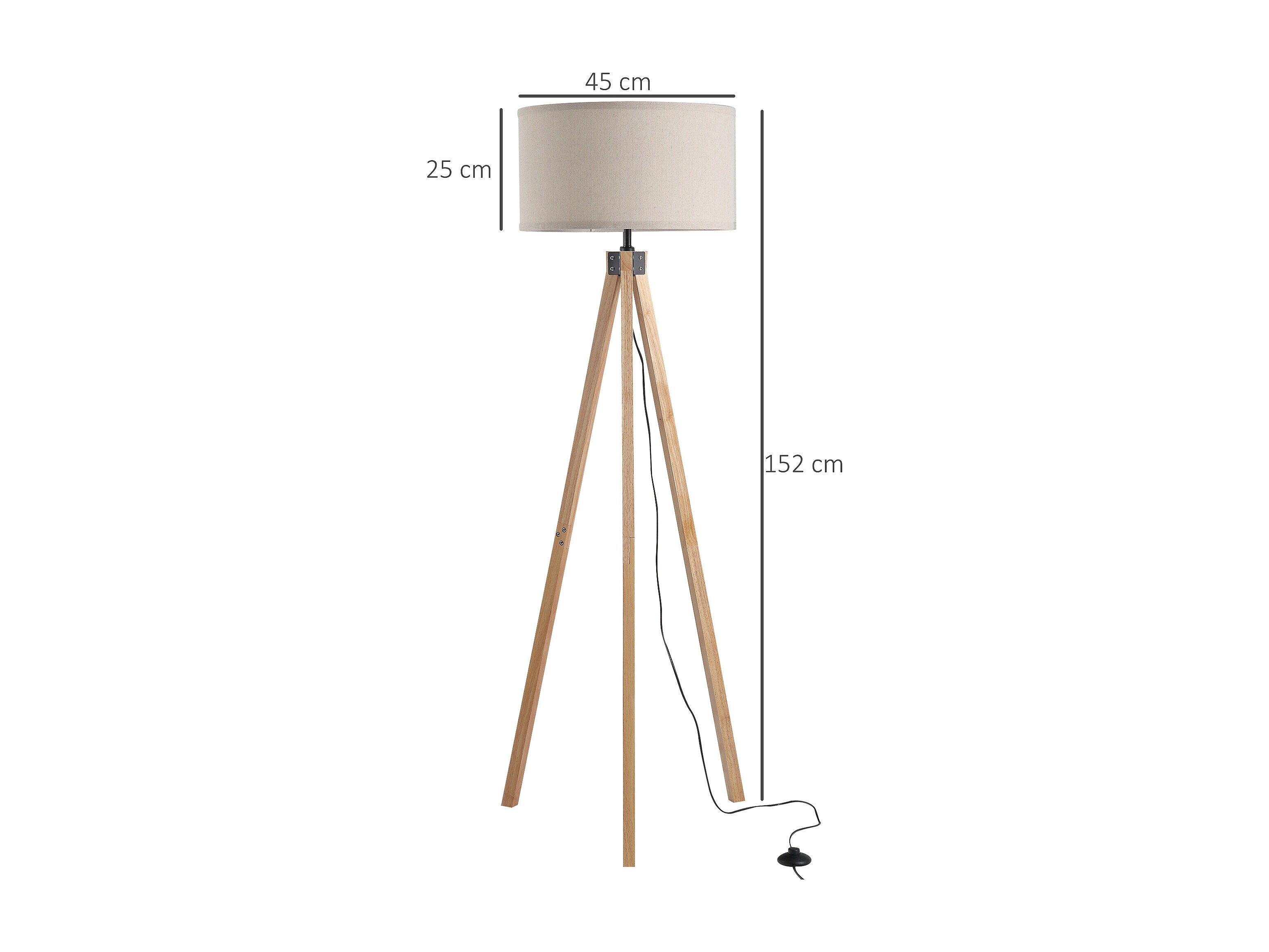 Lampadaire trépied style scandinave 40 W max. dim. 45L x 45l x 152H cm bois de pin lin beige