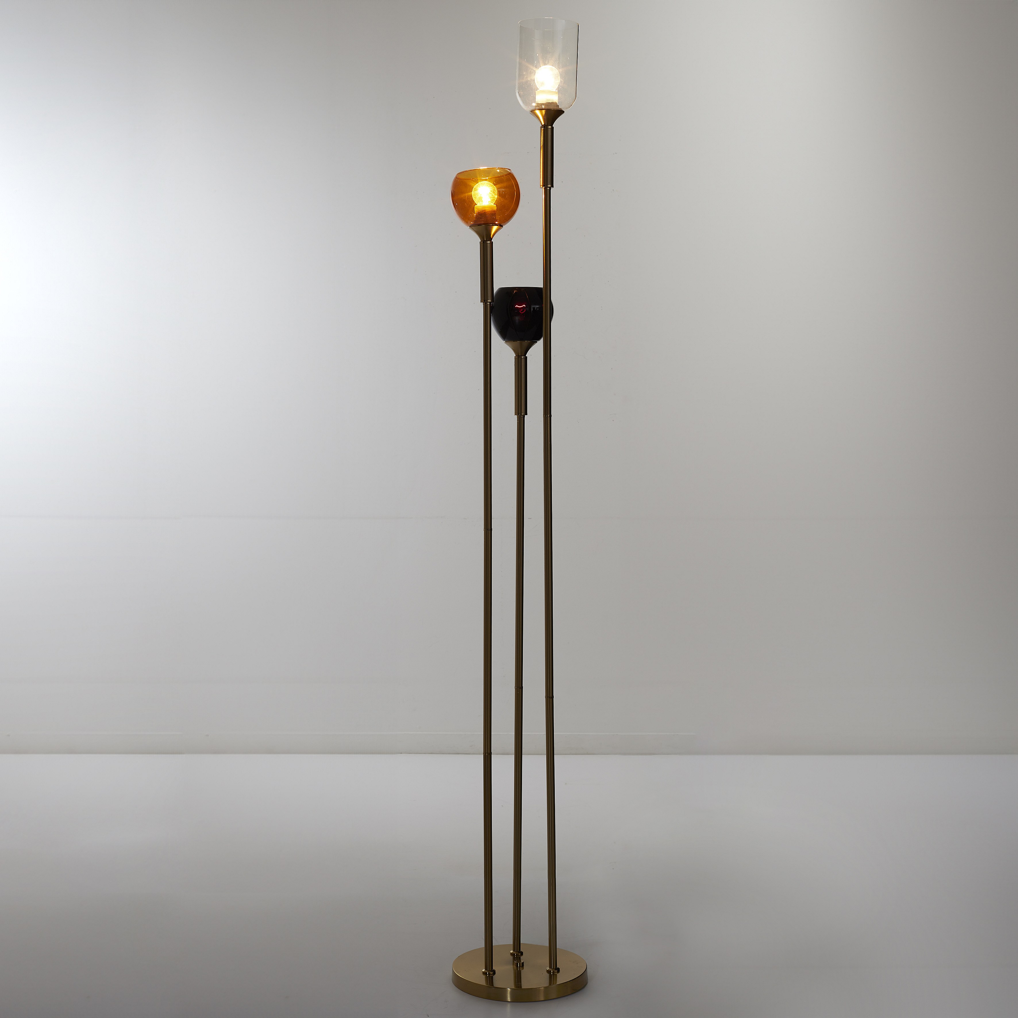 Lampadaire Tripod Verre Fume Noir, Orange, Blanc