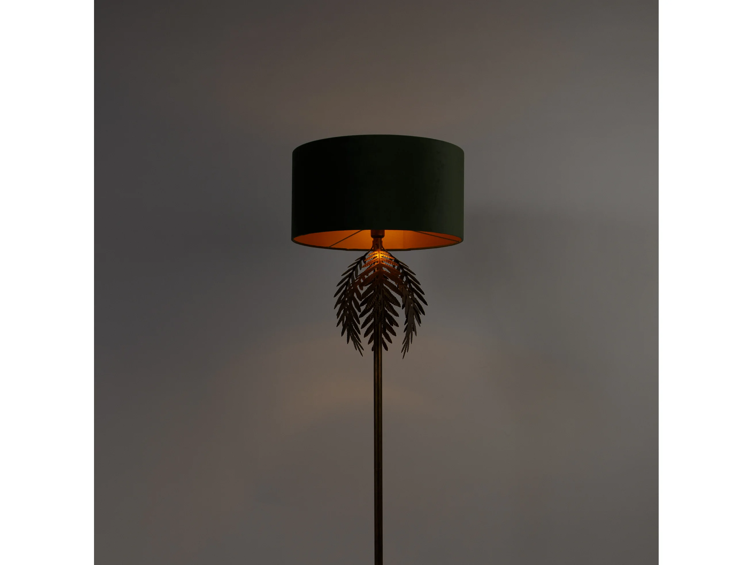 Lampadaire vintage doré avec abat-jour en velours vert - Botanica