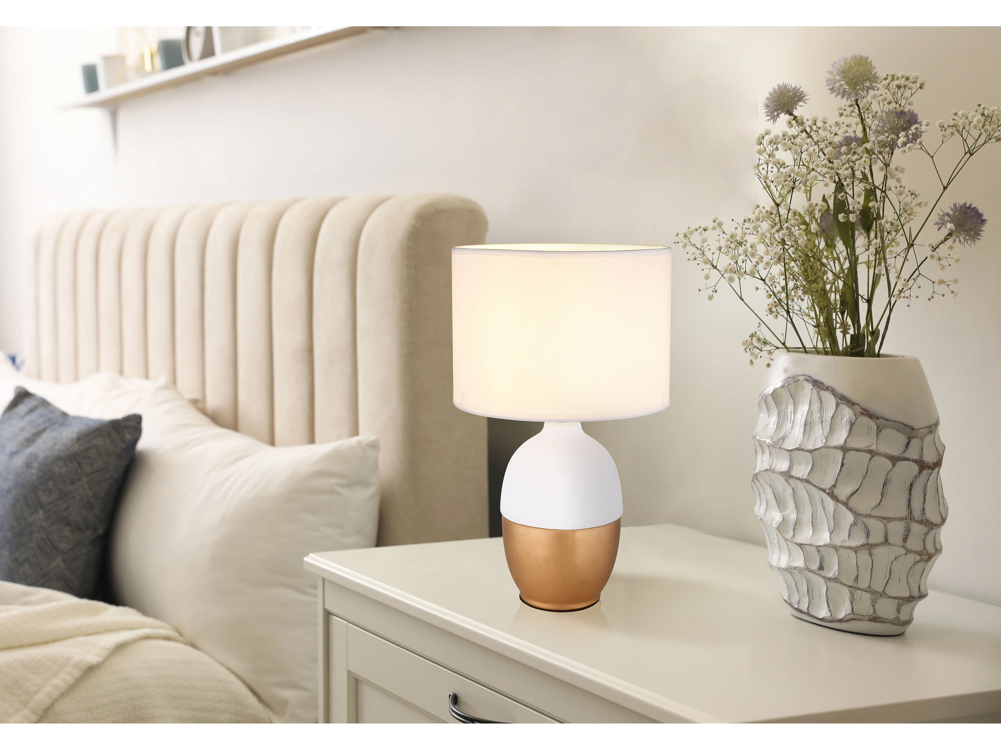 Lampe à poser en céramique blanc mat et abat-jour en lin naturel TIGA