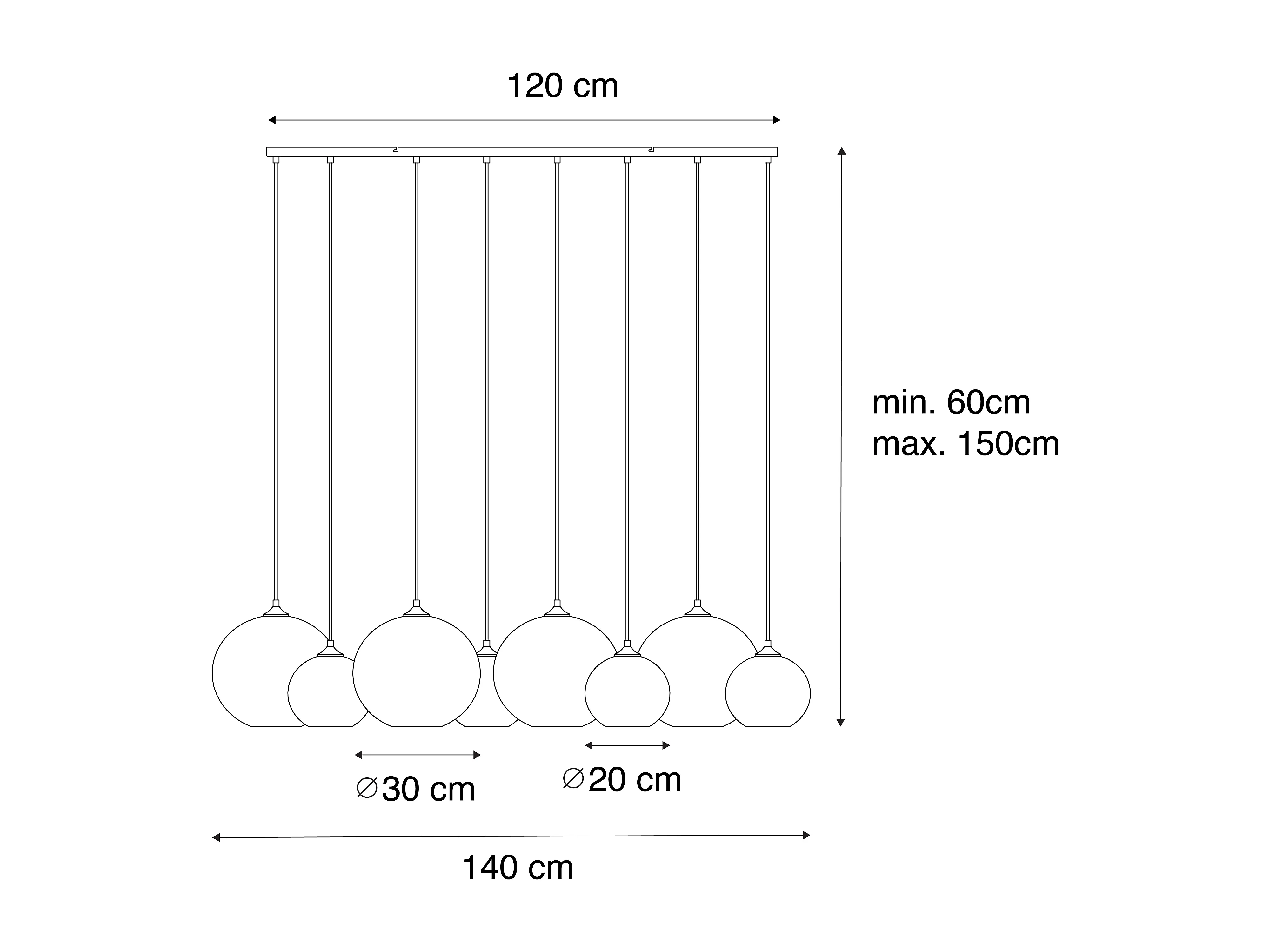 Suspension Art Déco bronze foncé avec verre ambre 8 lumières - Sandra