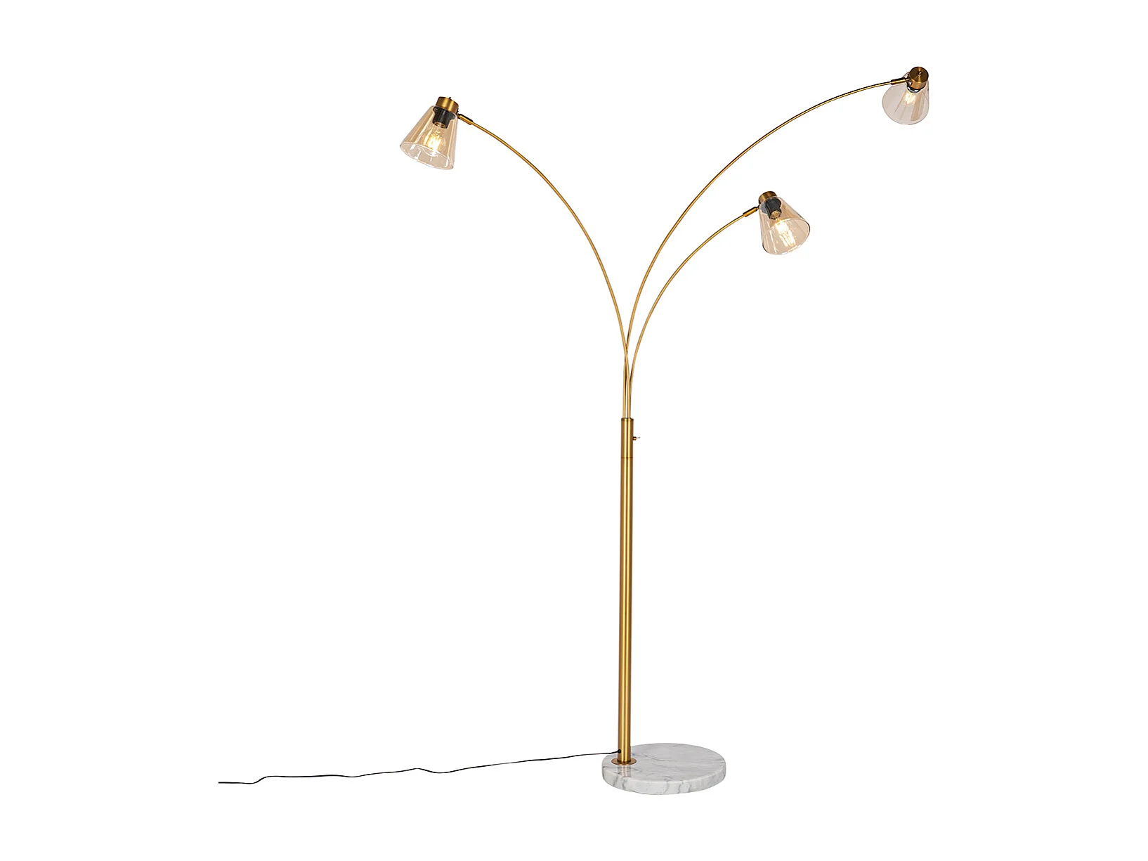 Lampadaire en arc bronze avec marbre et verre ambre 3 lumières - Nina