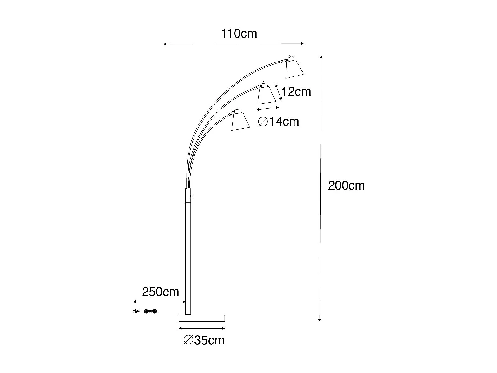 Lampe à arche moderne chromée avec abat-jour blanc - Arc Basic