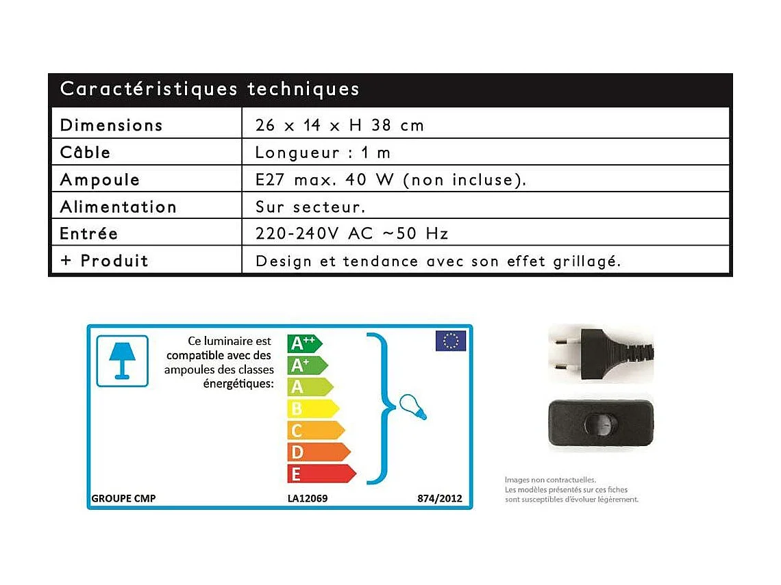 Lampe A Poser Grille Metal Noir Bois Noir, Marron