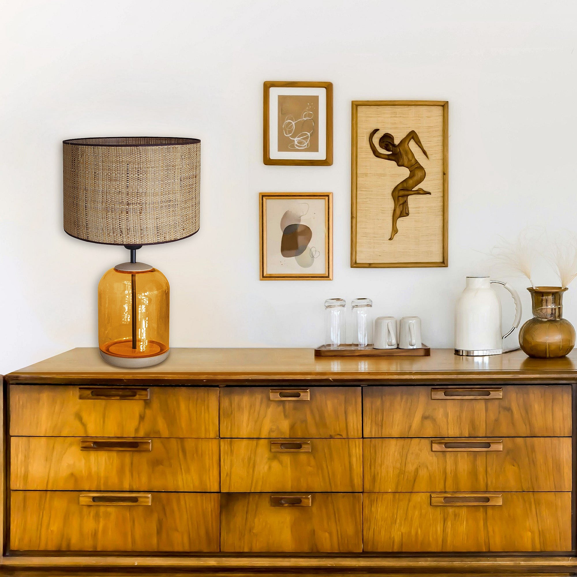 Lampe de Salon TOSEL ,bois,verre,naturel,H53xD35x P35cm