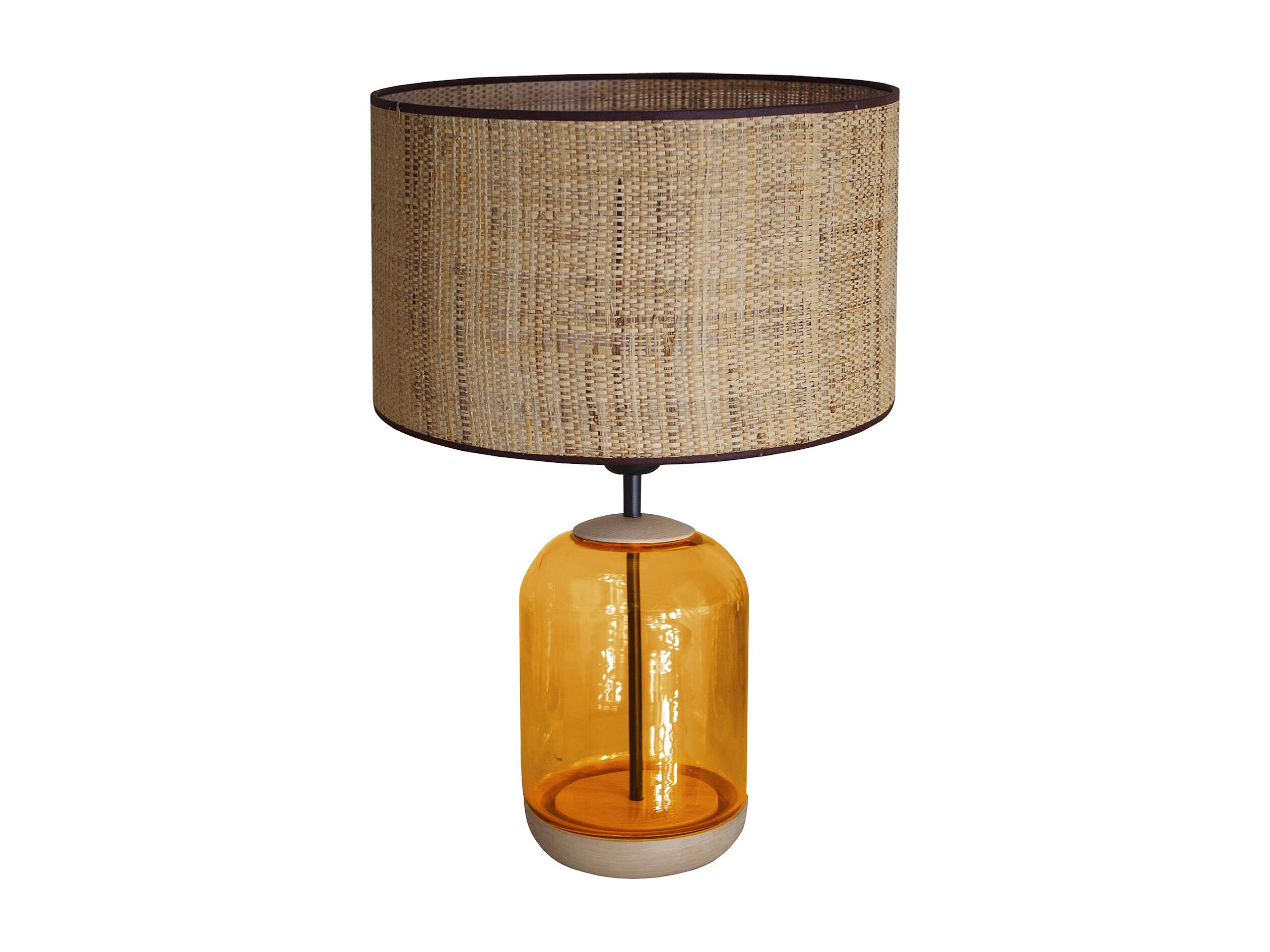 Lampe de Salon TOSEL ,bois,verre,naturel,H53xD35xP 35cm