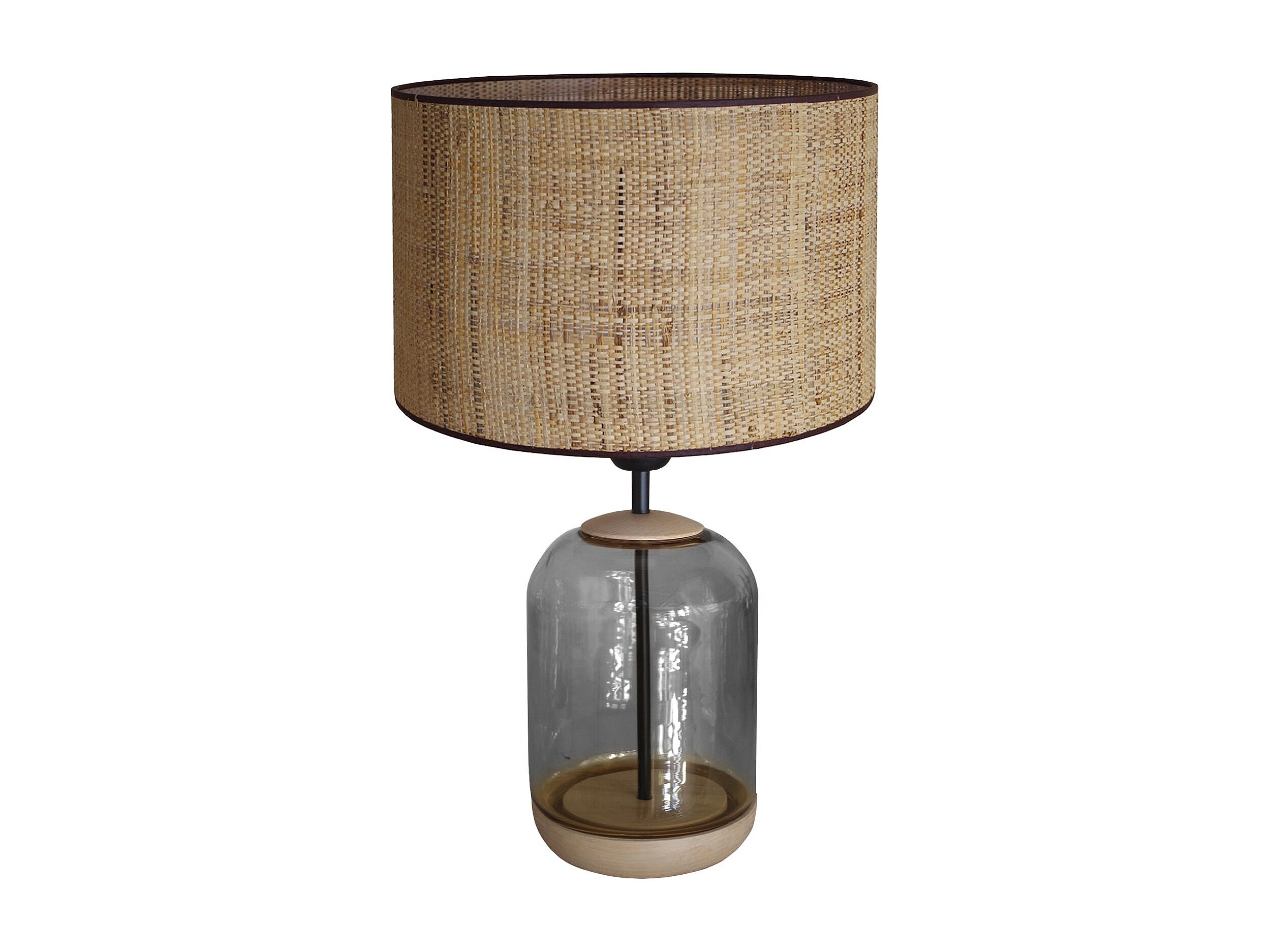 Lampe a Poser TOSEL ,bois,verre,naturel,H50xD30x P 30cm