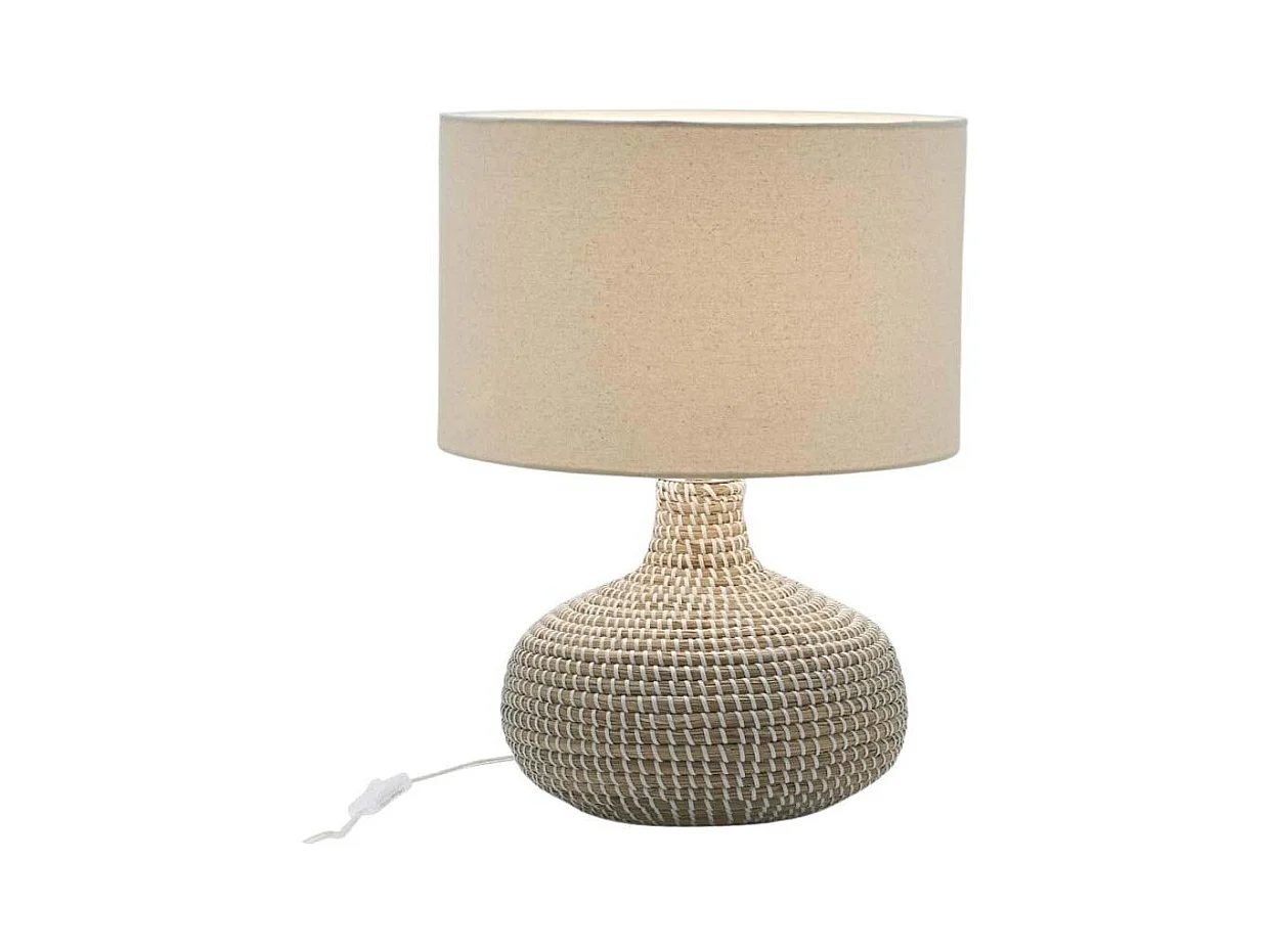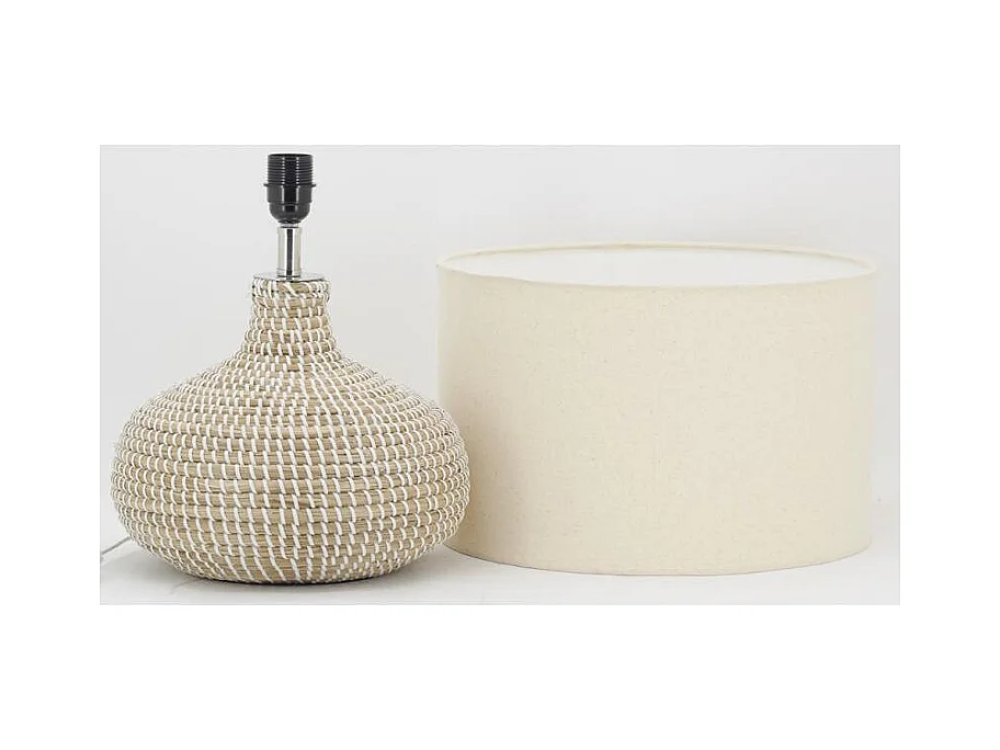 Lampe à poser 40x40x50 avec base et abat-jour en papier mâché blanc