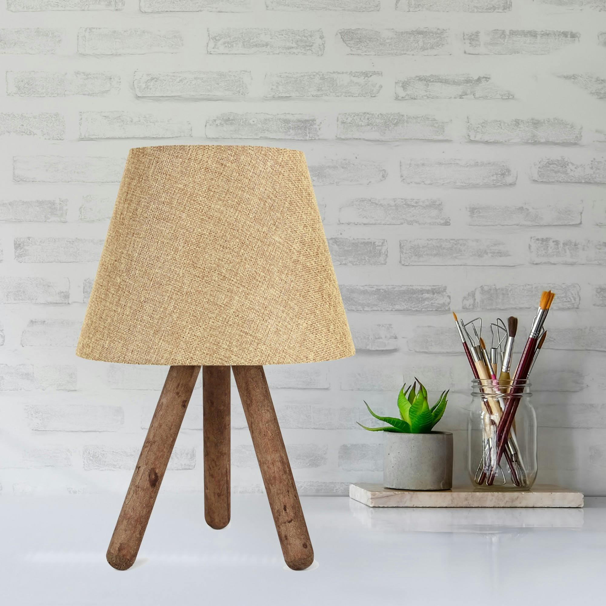Lampe de chevet trépied moderne, abat-jour beige KILIS