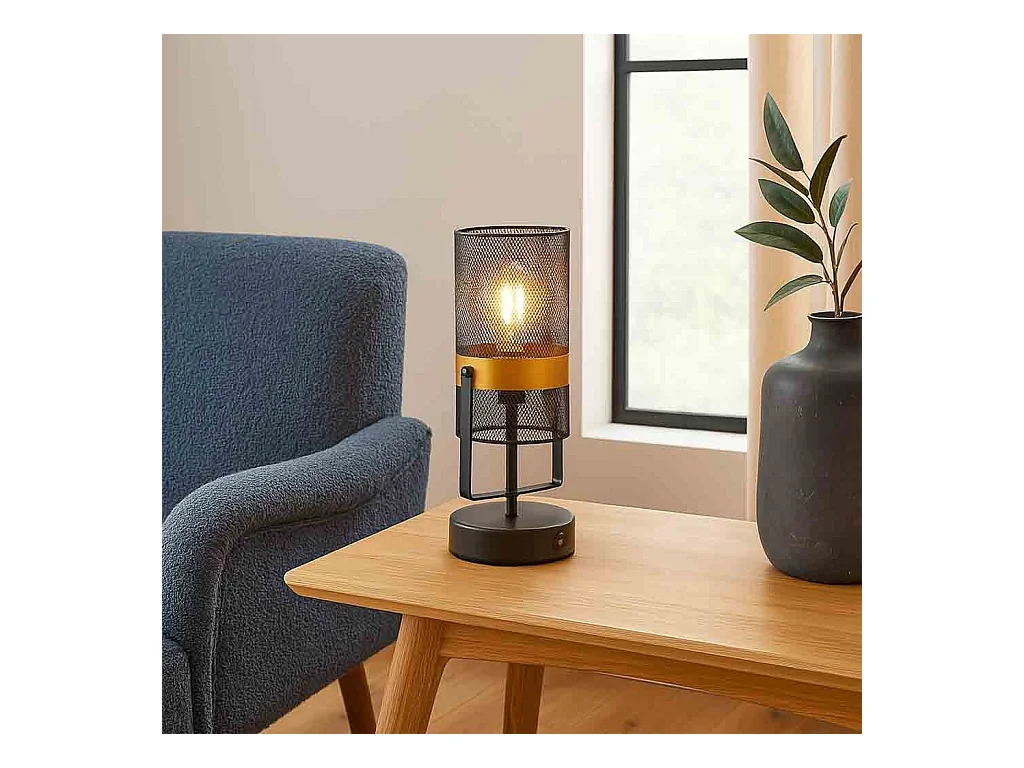 Lampe de table en métal noir avec 1 spot 12,5x12,5x31h cm