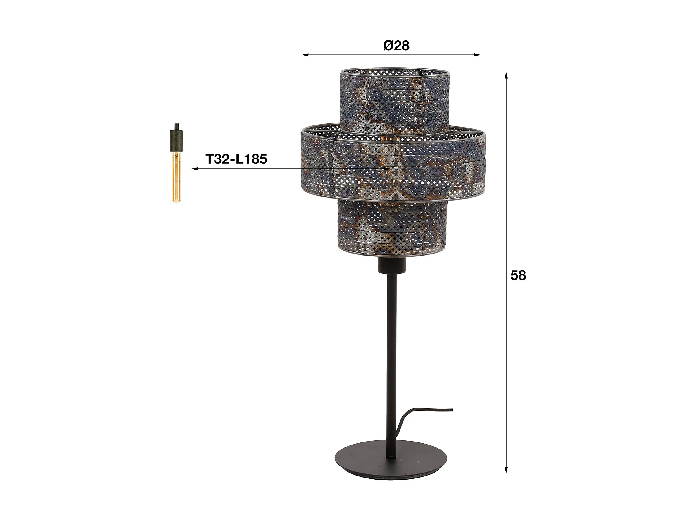 Lampe de table - Métal - Thermolaqué noir - 20x20x55 cm