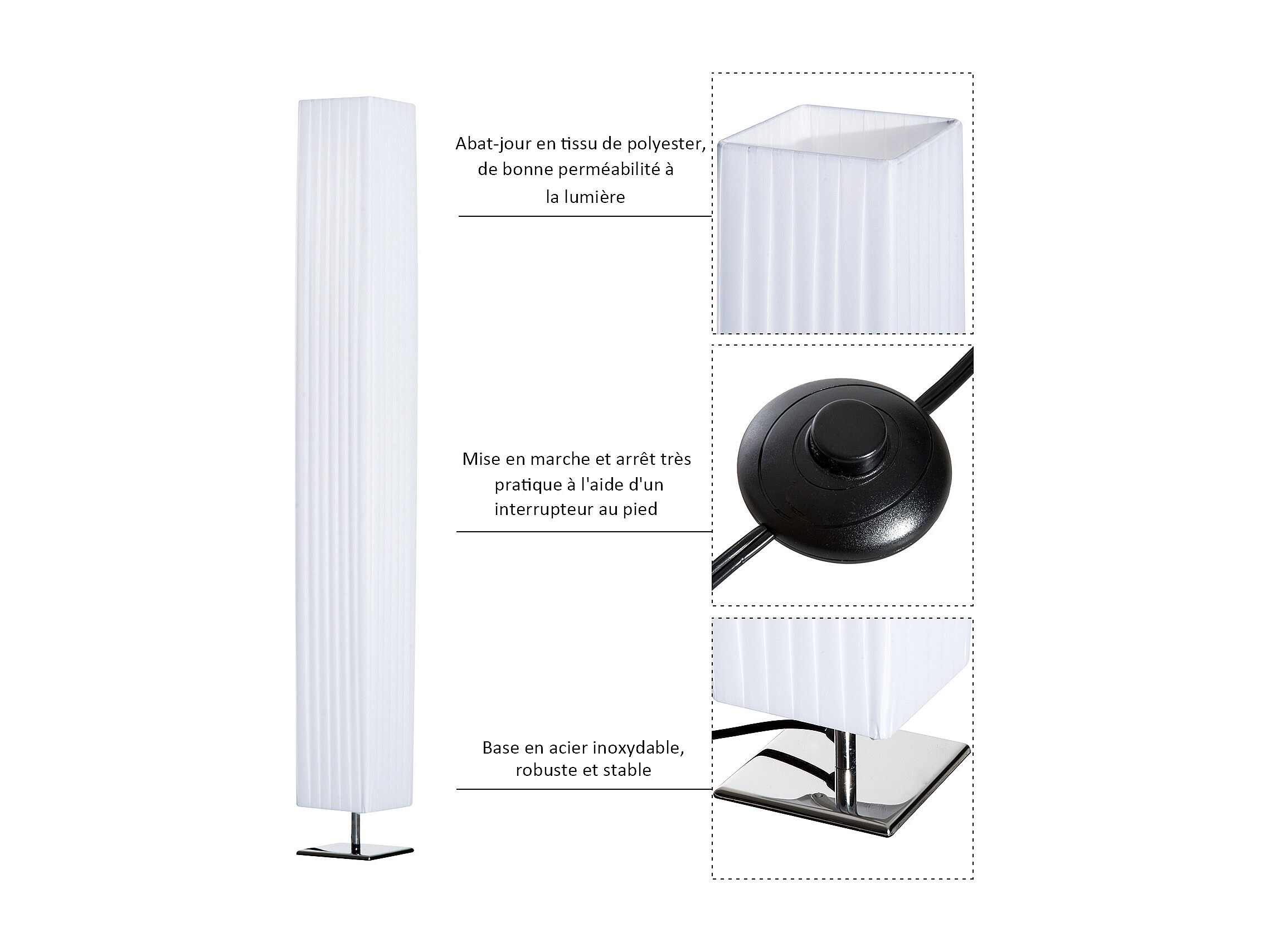 Lampe lampadaire colonne sur pied moderne lumière tamisée 40 W 14L x 14l x 120H cm inox blanc