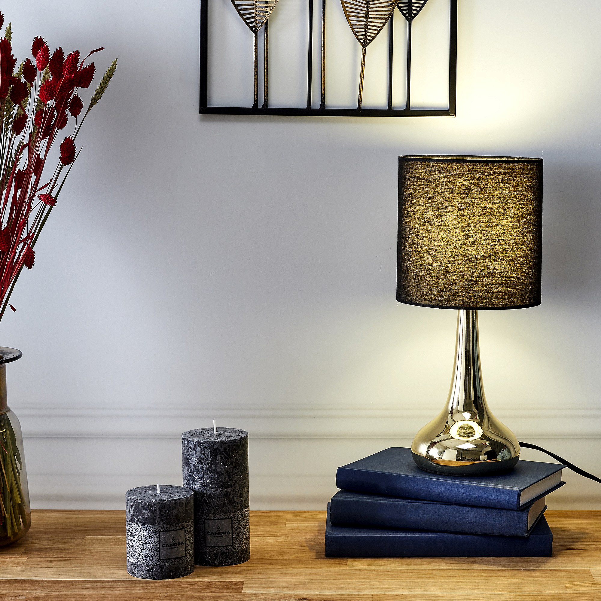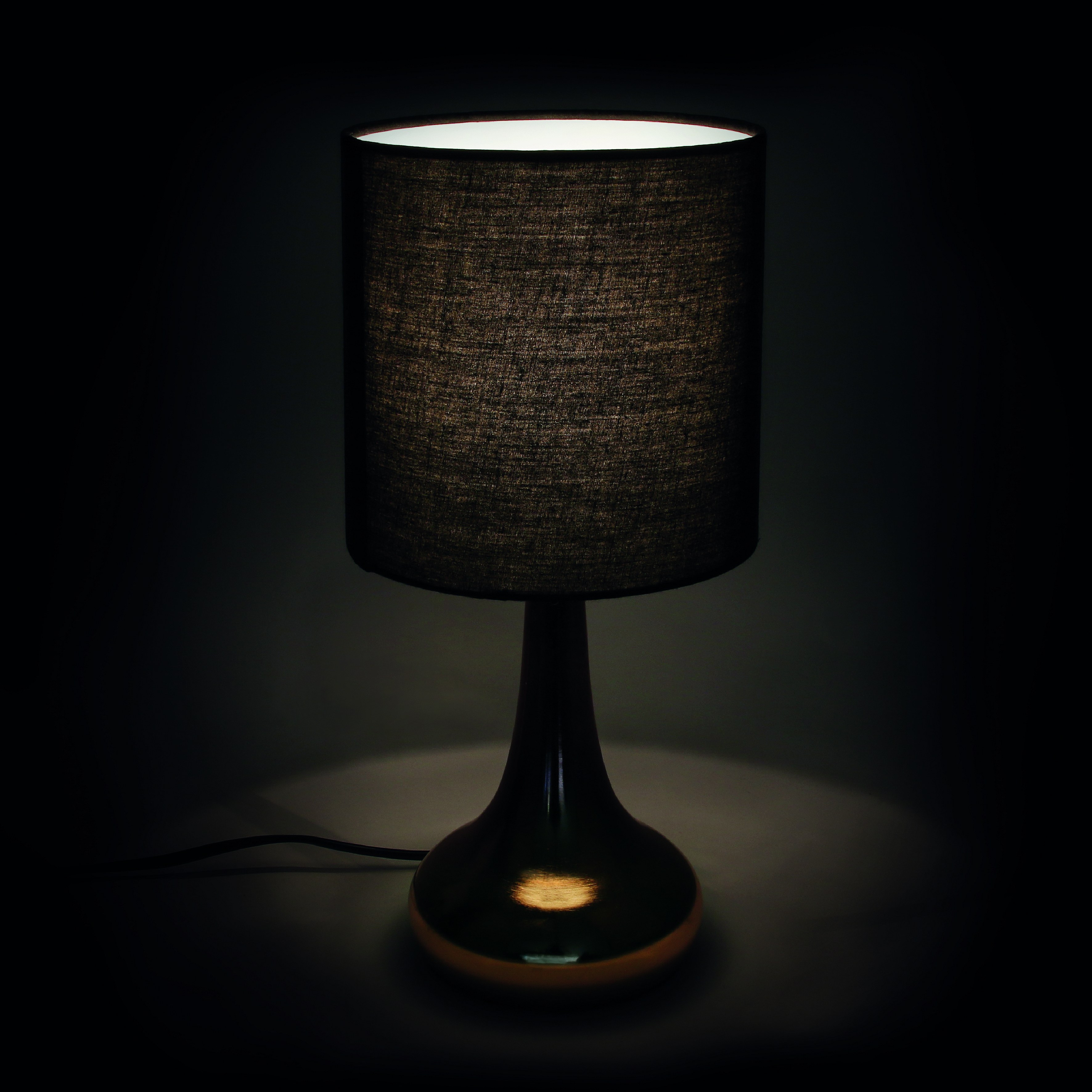 Lampe de Table - Abat-Jour en Tissu Noir et Détails Concentriques Dorés - Dimensions Ø 22,5 cm x Hauteur 65 cm - Matériaux Fer, PVC et Tissu