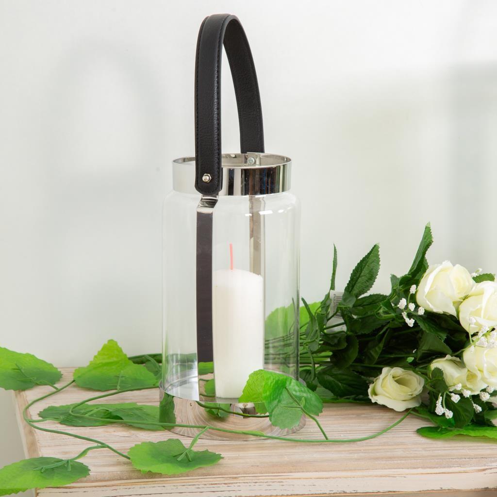 Lanterne en acier inoxydable et cristal argenté 12,5x12,5x23h