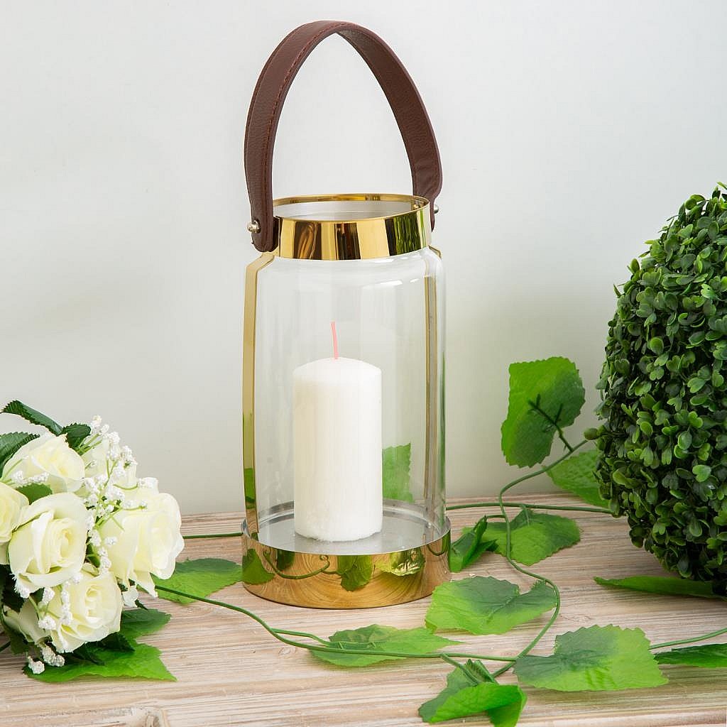 Lanterne en acier inoxydable et cristal doré 12,5x12,5x23h