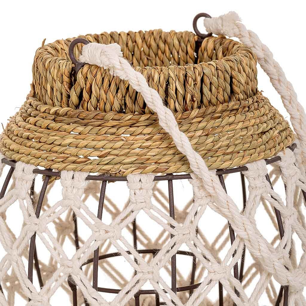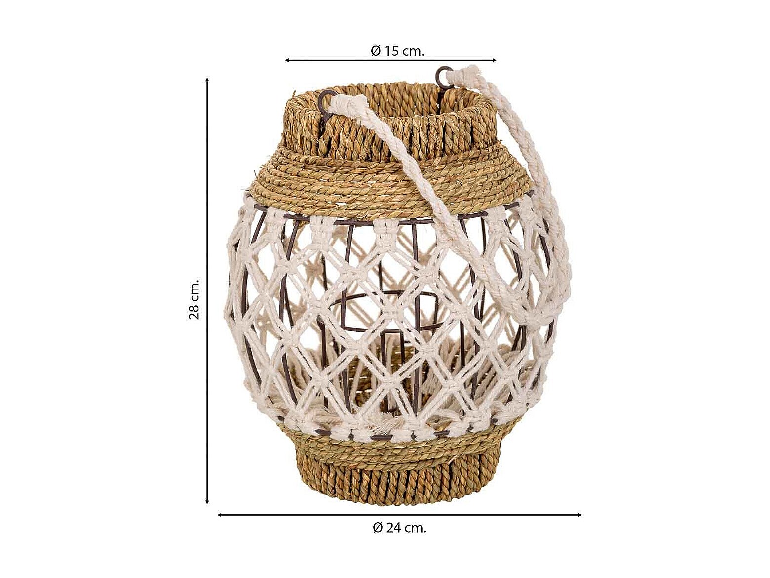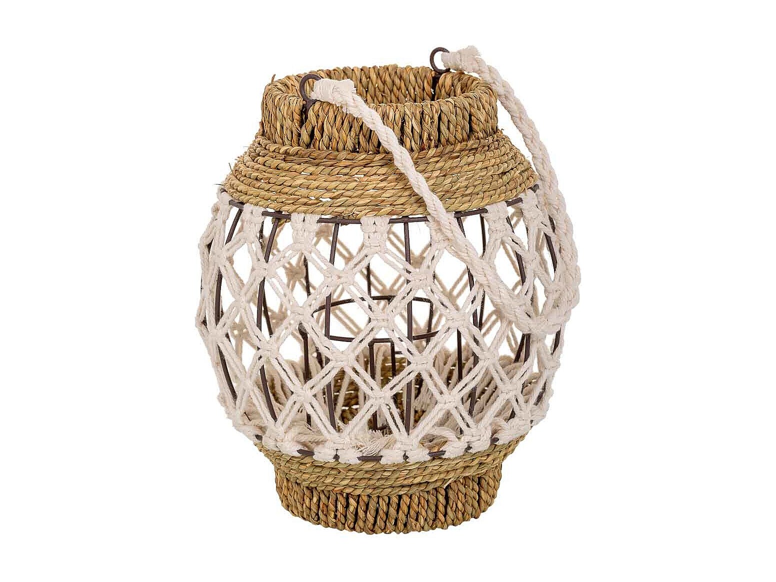 Lanterne en coton tressé et fibre naturelle marron 15x24x28h