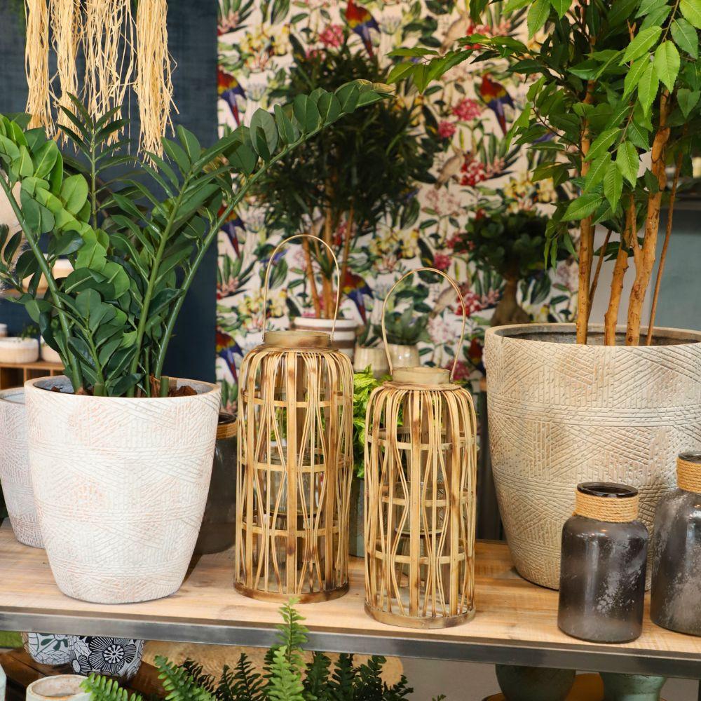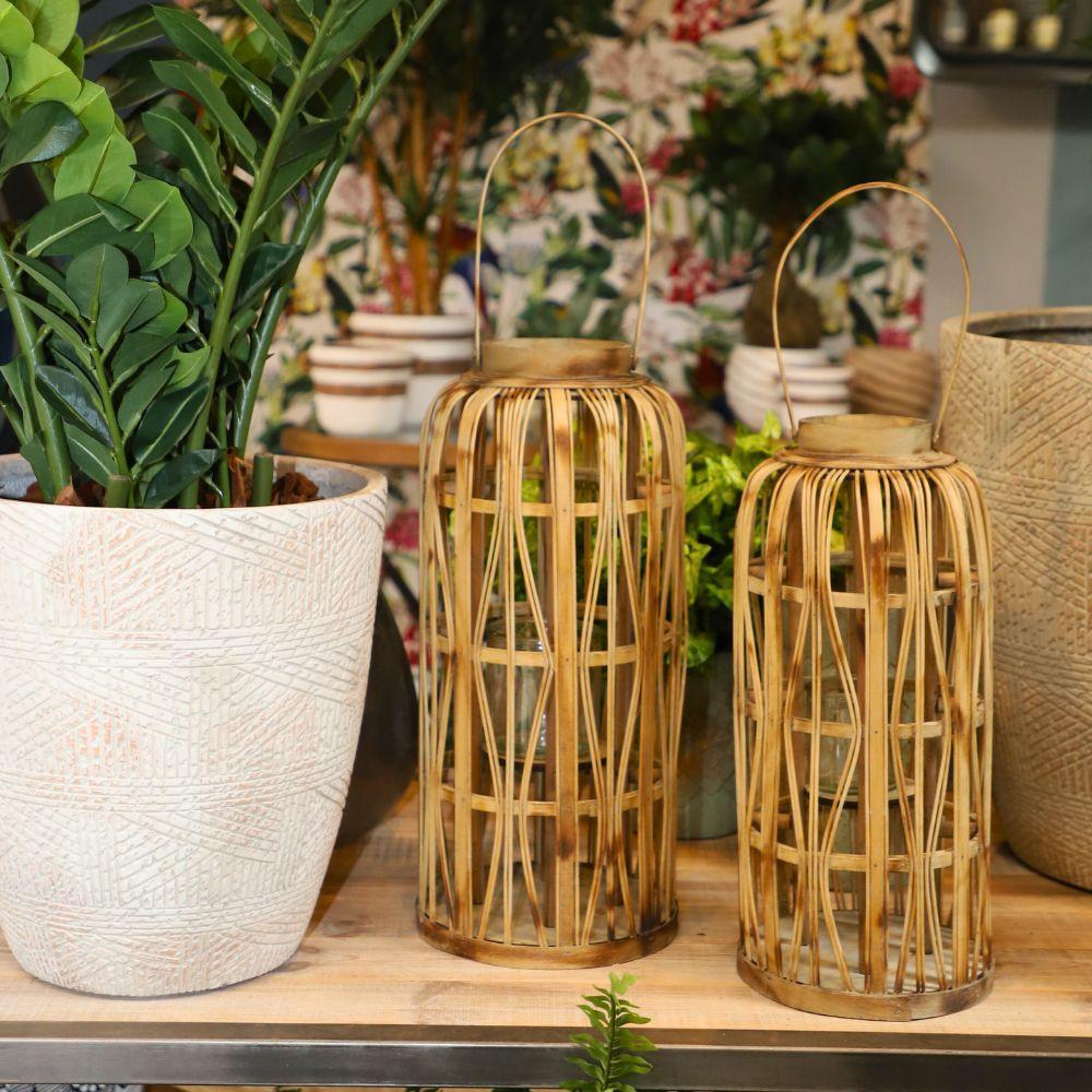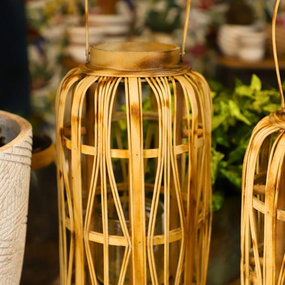 Lanterne jardin extérieur à poser bougie ancienne rotin naturel 44cm