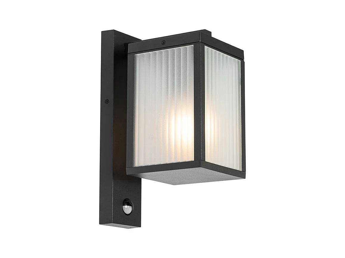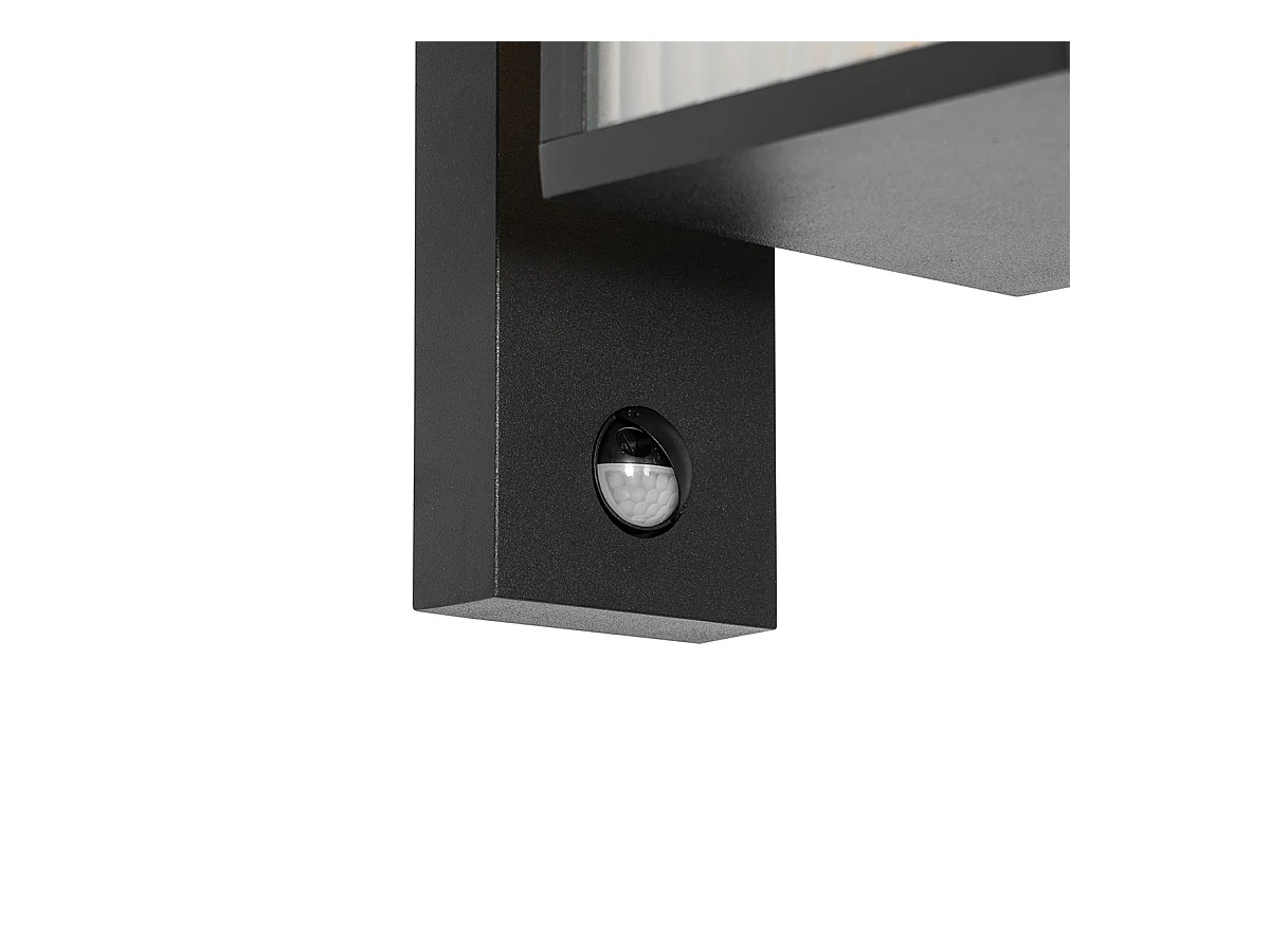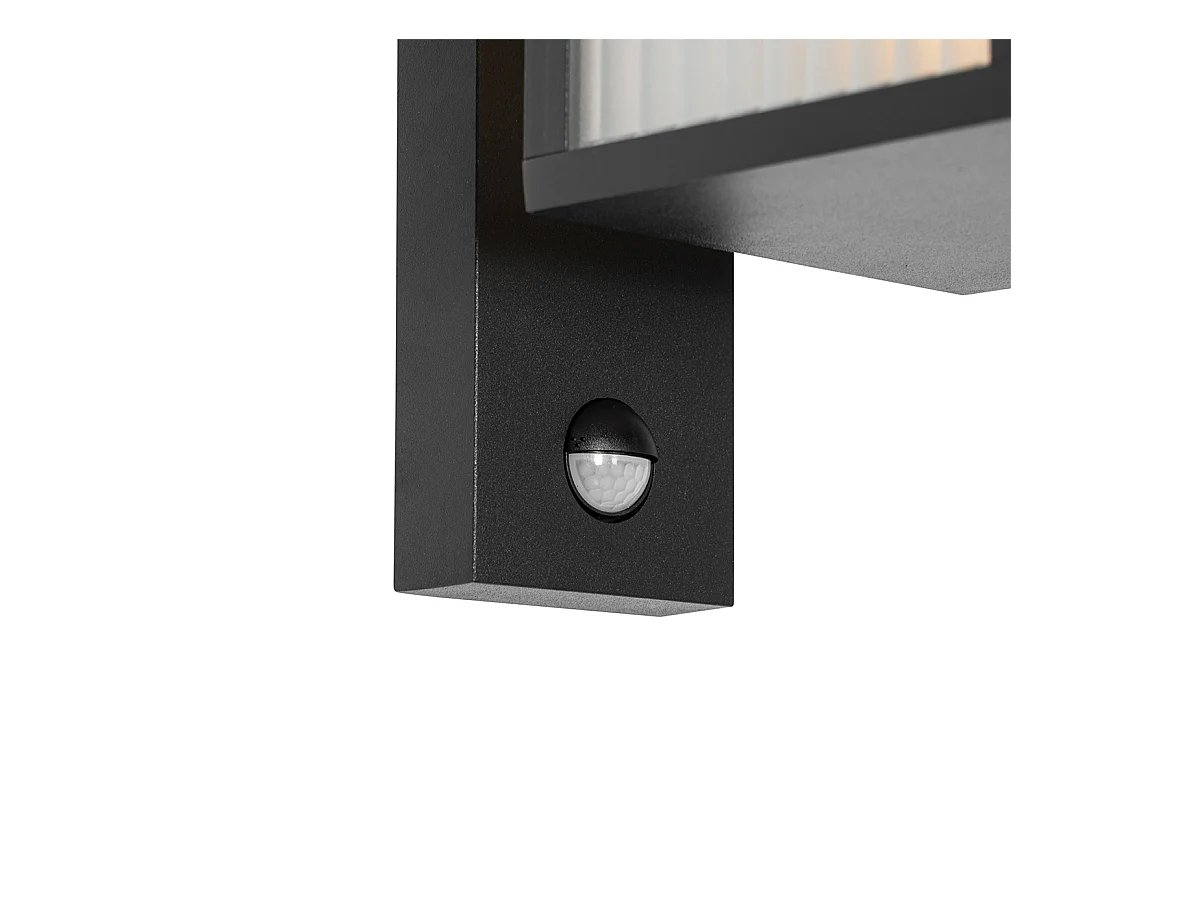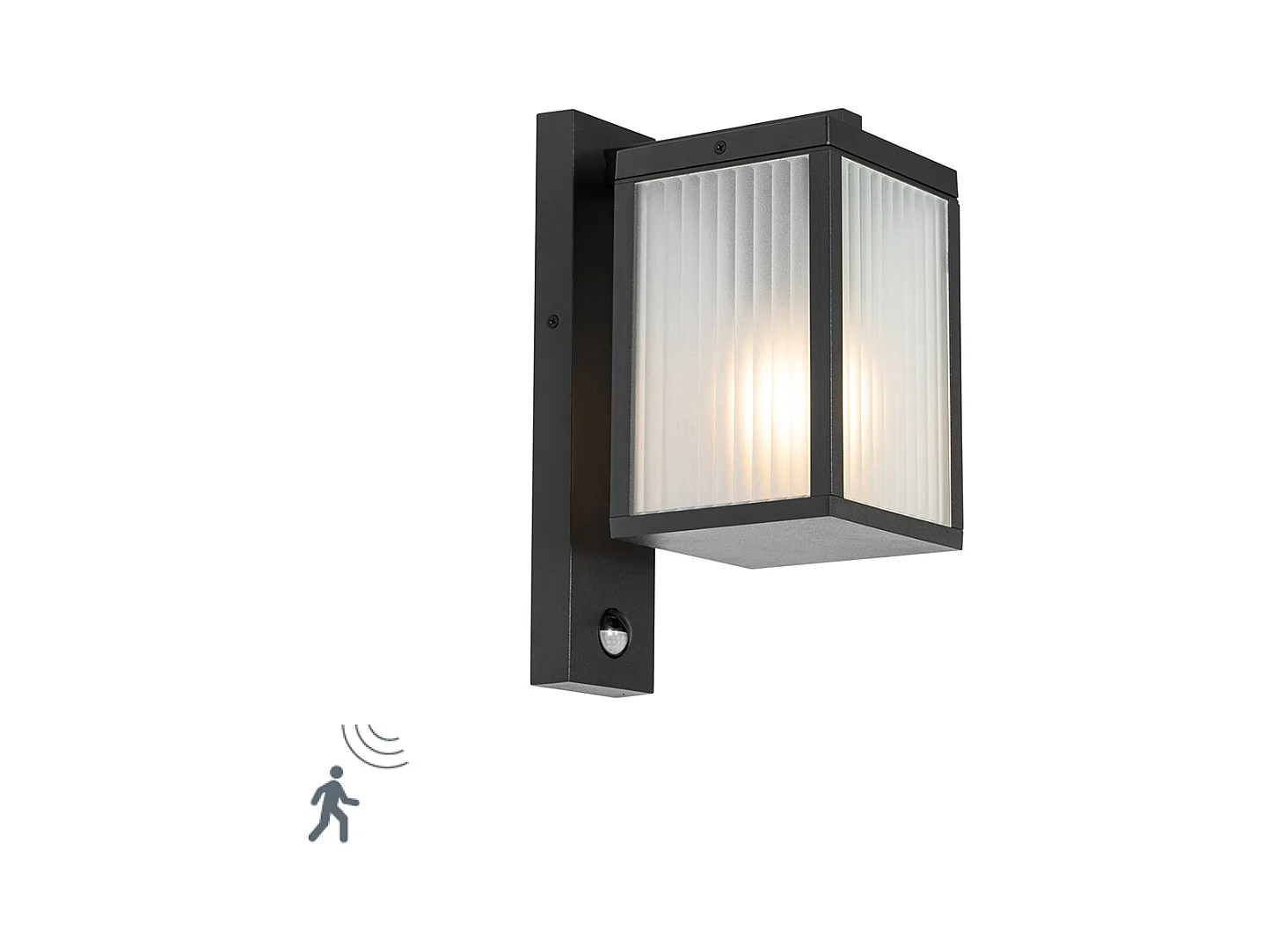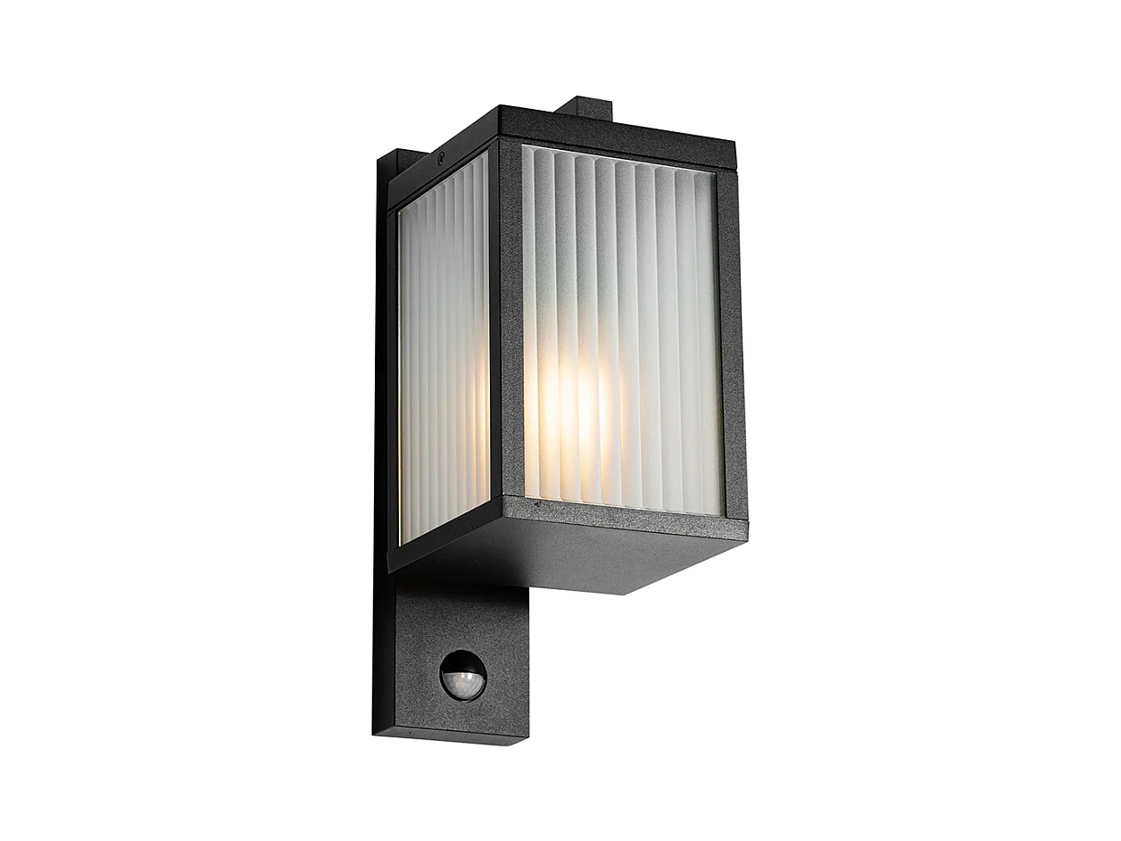 Lanterne murale d'extérieur noire avec verre nervuré et détecteur de mouvement - Charlois