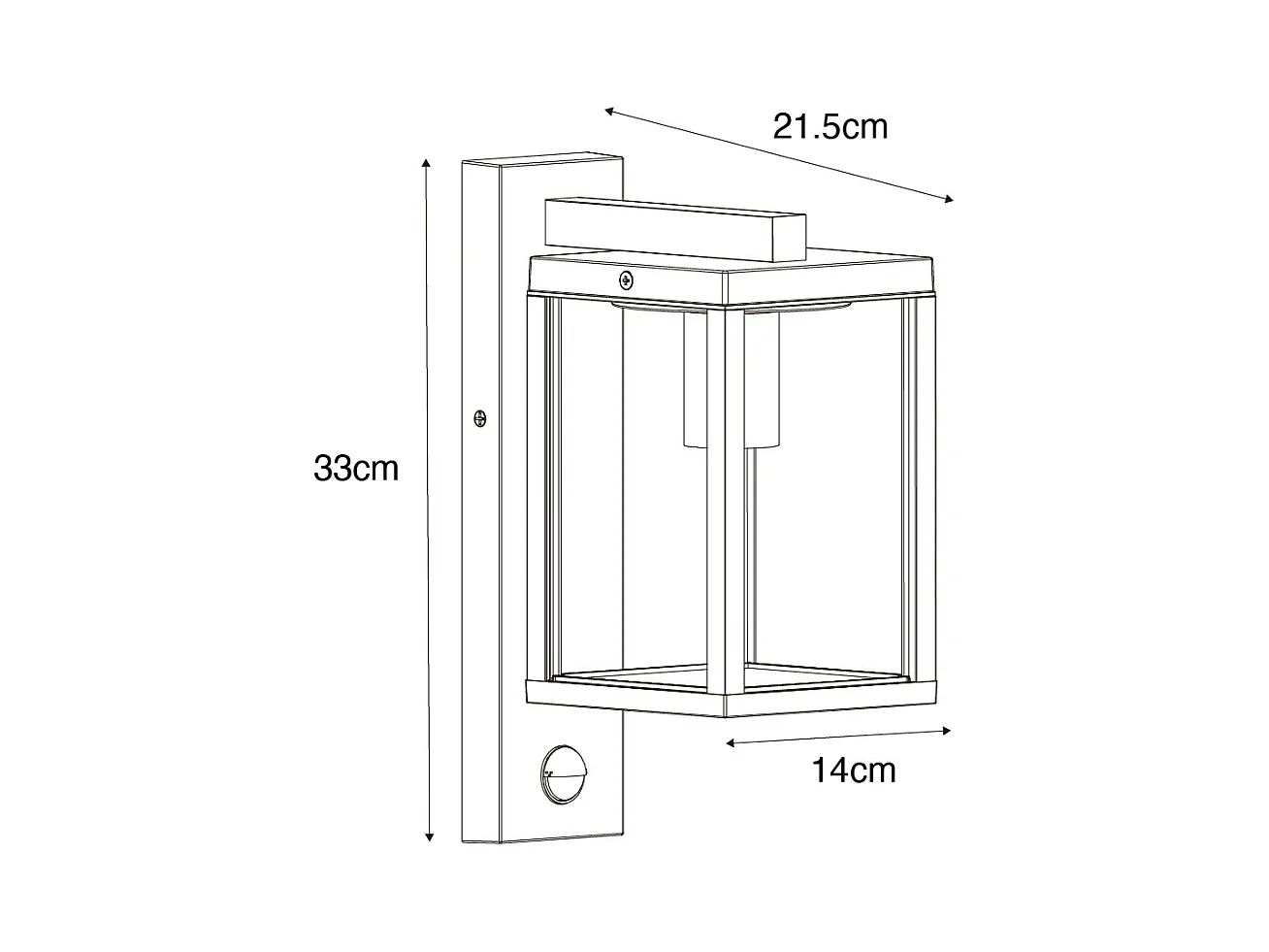 Applique d'extérieur noire IP44 avec détecteur de mouvement - Joren