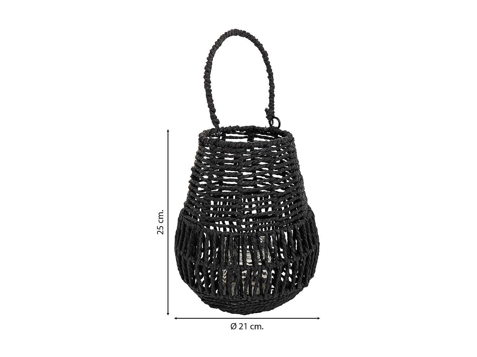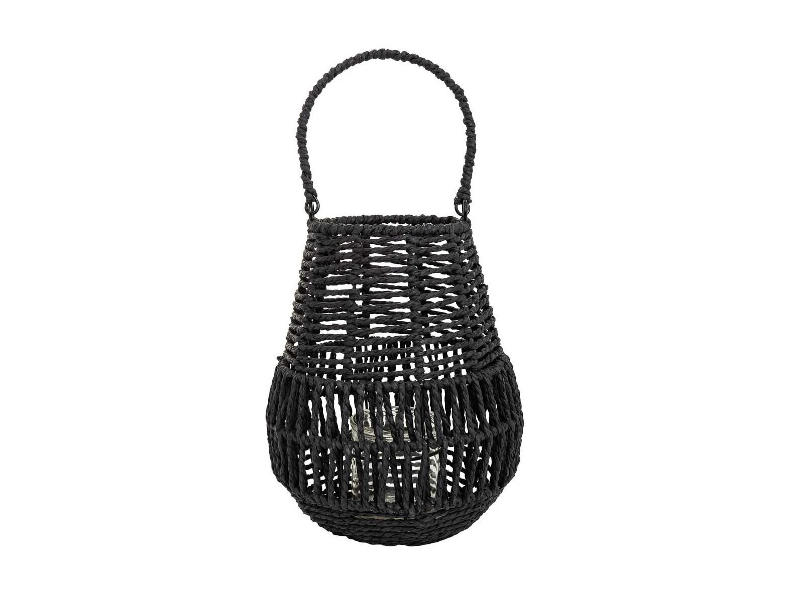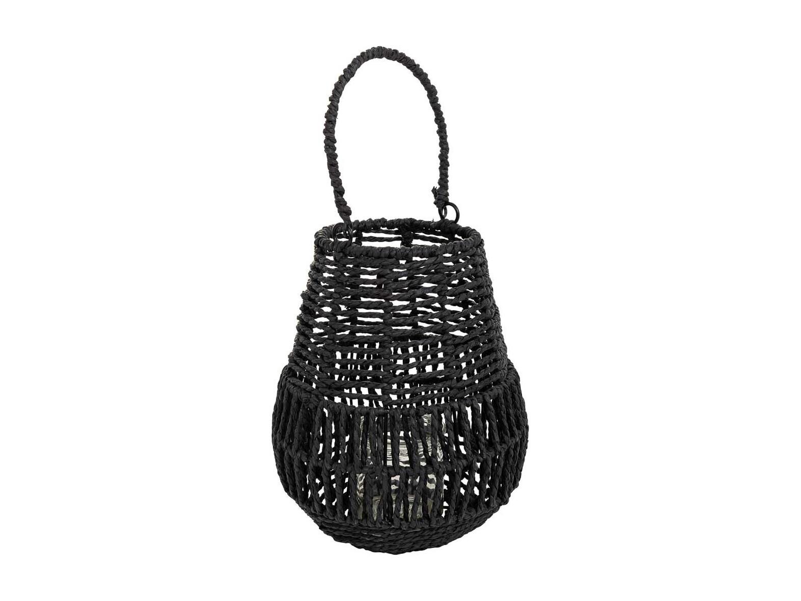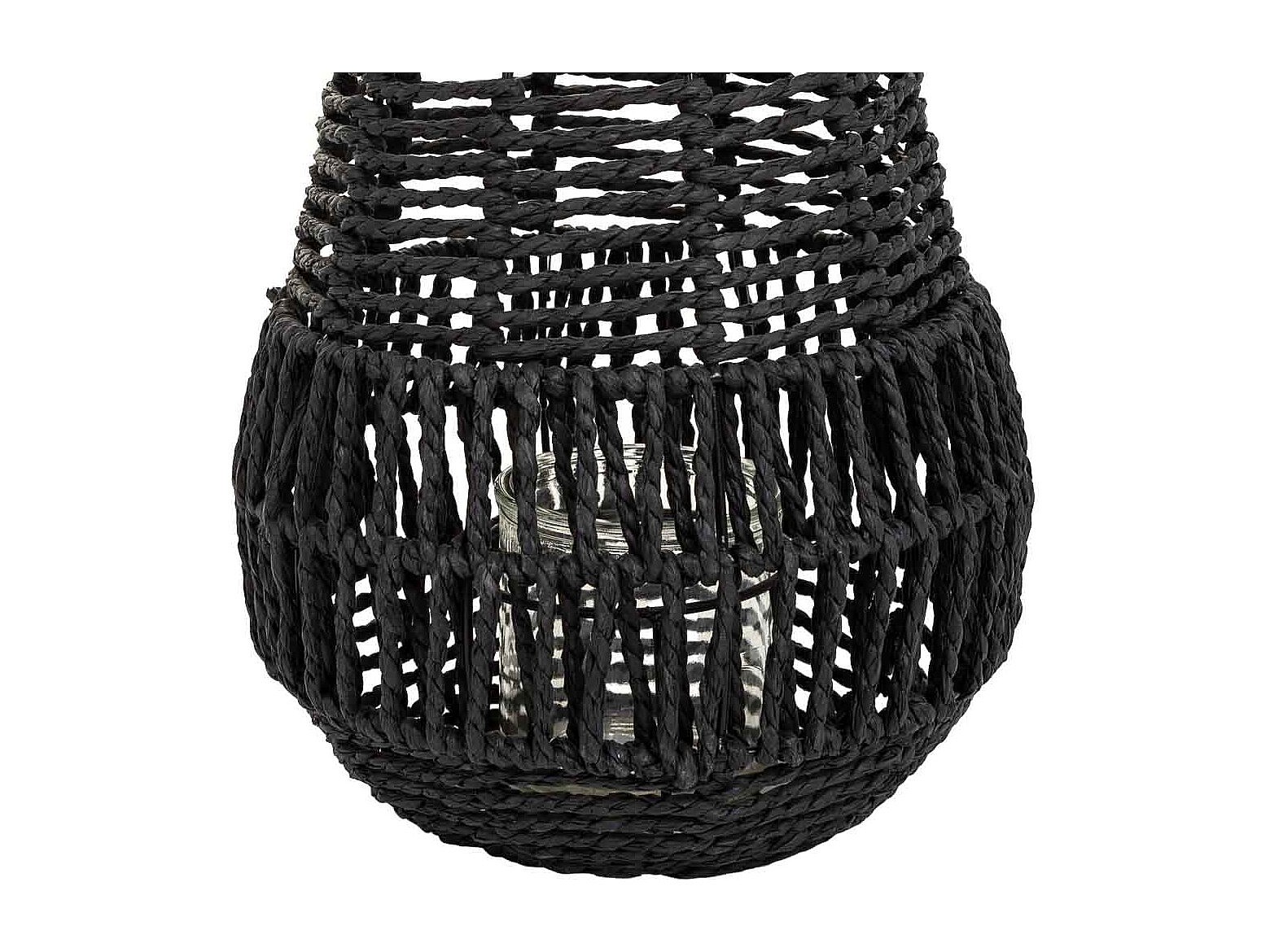 Lanterne photophore en métal et corde de papier noir d21x25h