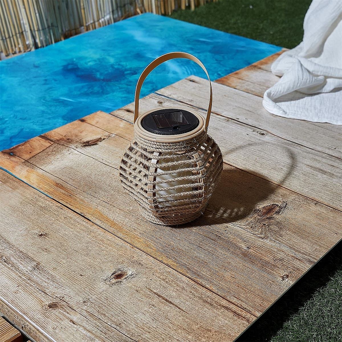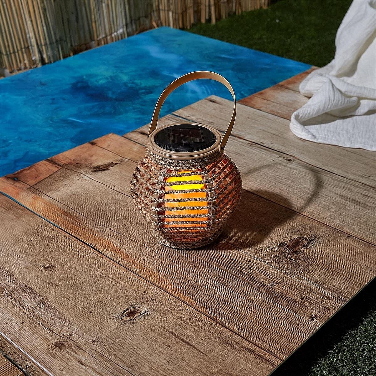 Lanterne solaire led effet bougie, en polypropylène beige avec anse (H15 cm)