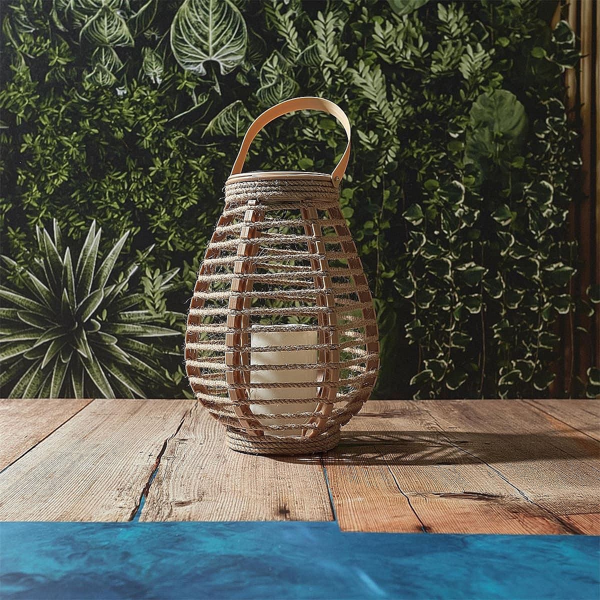 Lanterne solaire led effet bougie, en polypropylène beige avec anse (H26,5 cm)