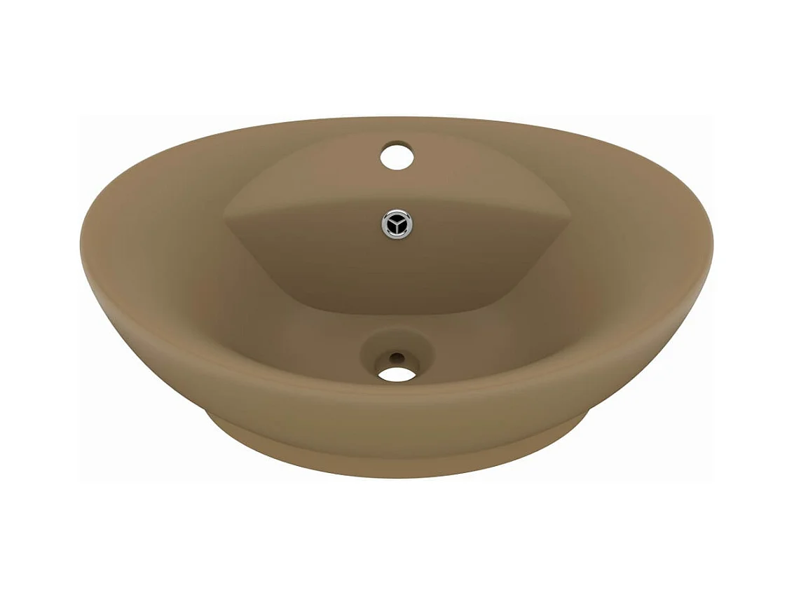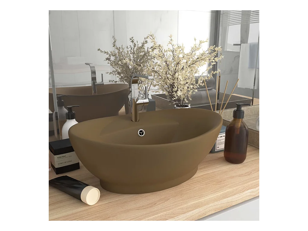 Lavabo ovale de luxe à trop-plein Crème mat 58,5x39cm Céramique