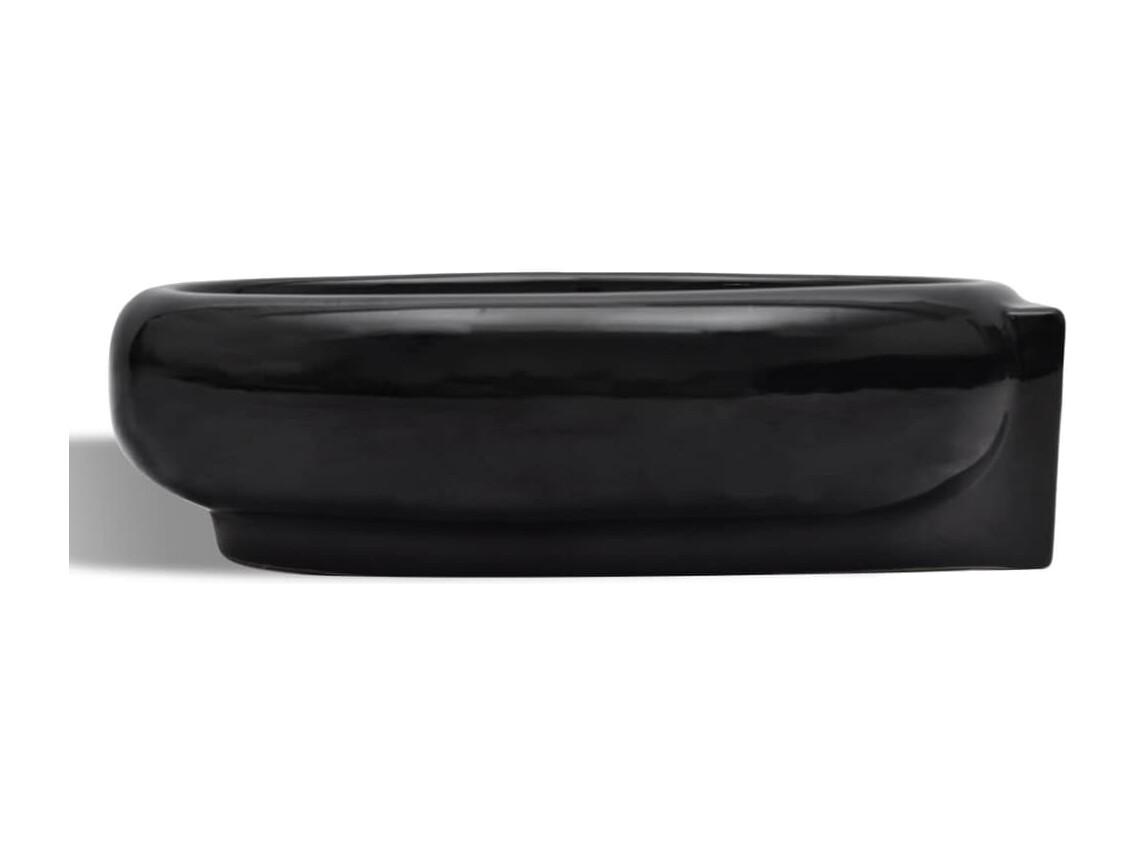 Lavabo rectangulaire-Vasque à poser-Bac à laver céramique noir de luxe avec trop-plein et trou