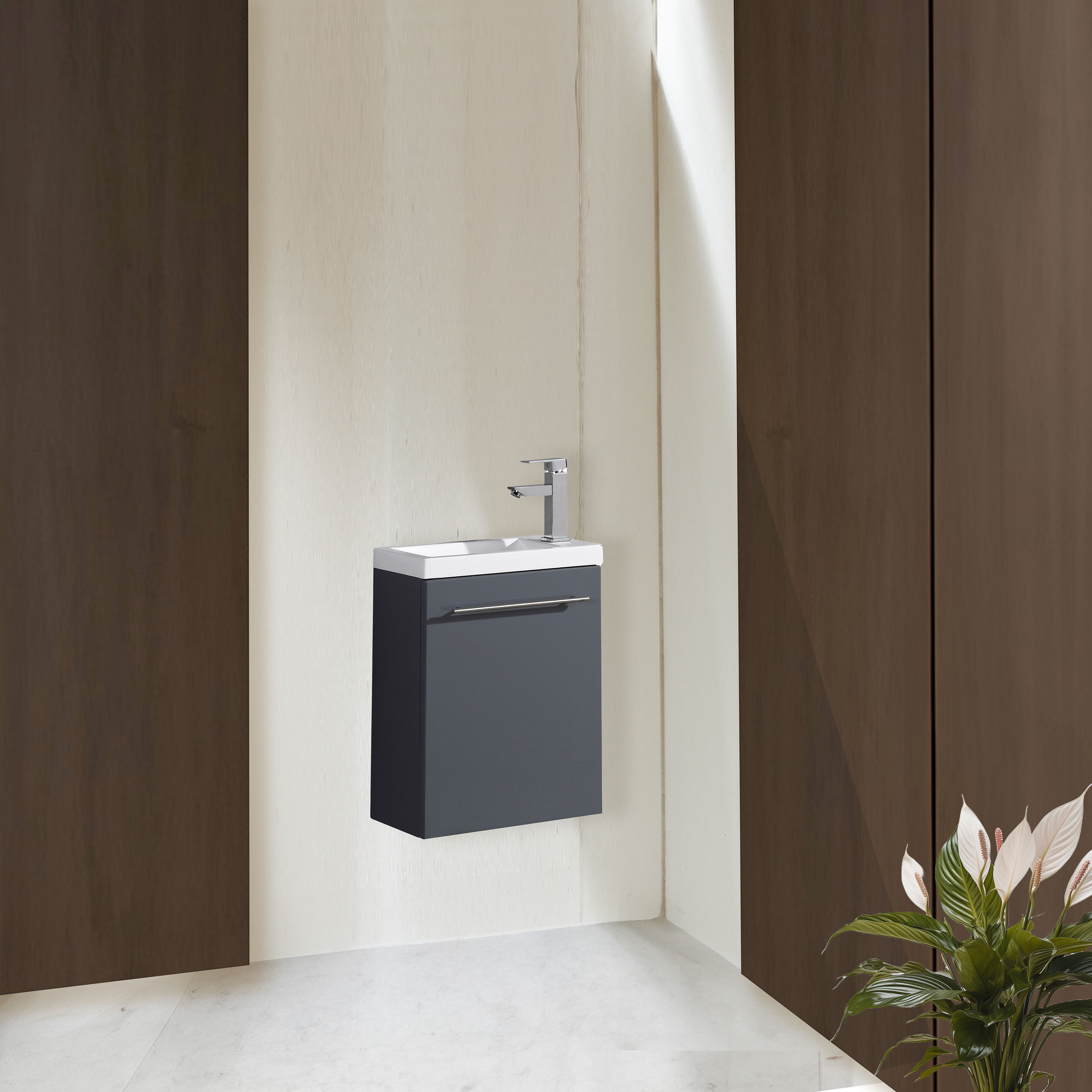 Meuble lave main vasque 40 cm gris laque Aquapixo