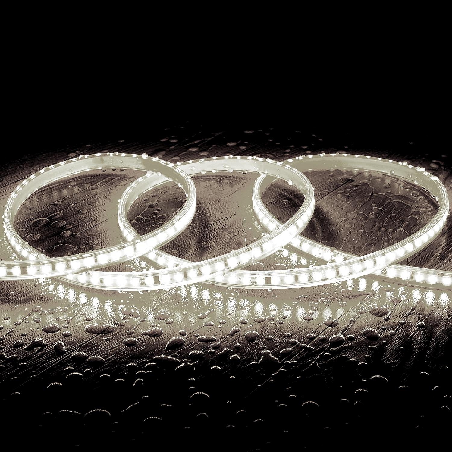 Ruban LED Dimmable 220V SMD 60 LED/m BOBINE 50m 5W/m 500lm/m Largeur 12mm Coupe 100cm IP65 Blanc froid