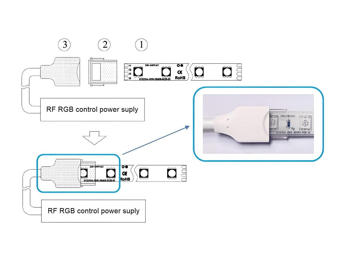 Contrôleur pour Ruban LED RGB 220V AC SMD Silicone FLEX avec Télécommande RF Blanc