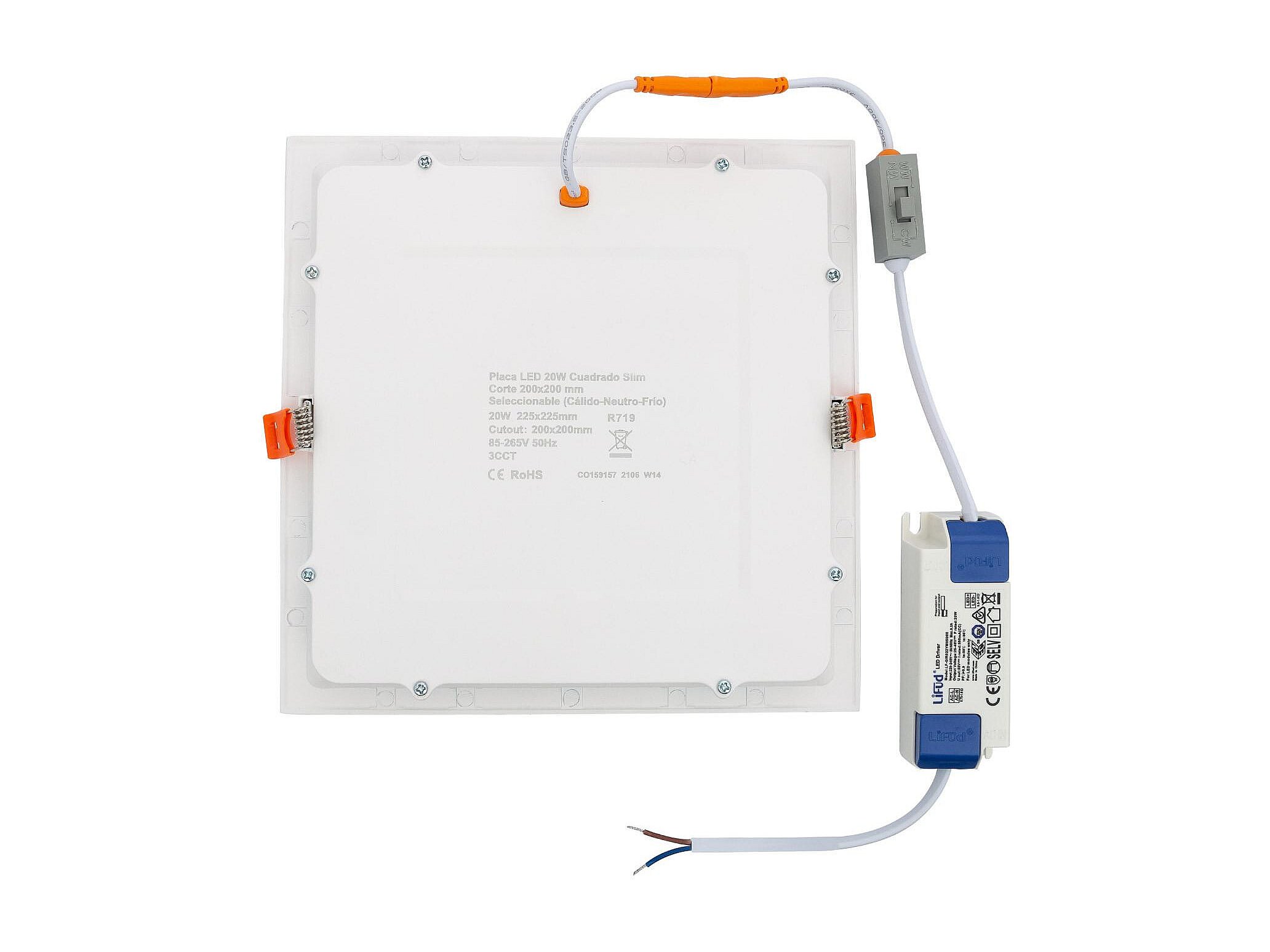 Dalle LED 20W Carrée CCT Sélectionnable Microprismatique LIFUD Coupe 200x200 mm No Flicker CCT