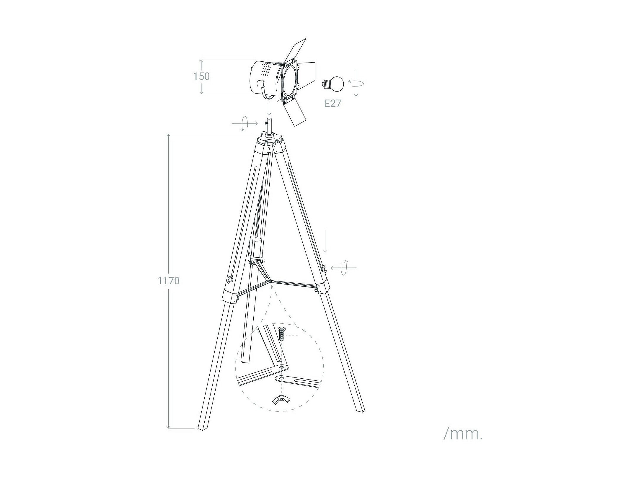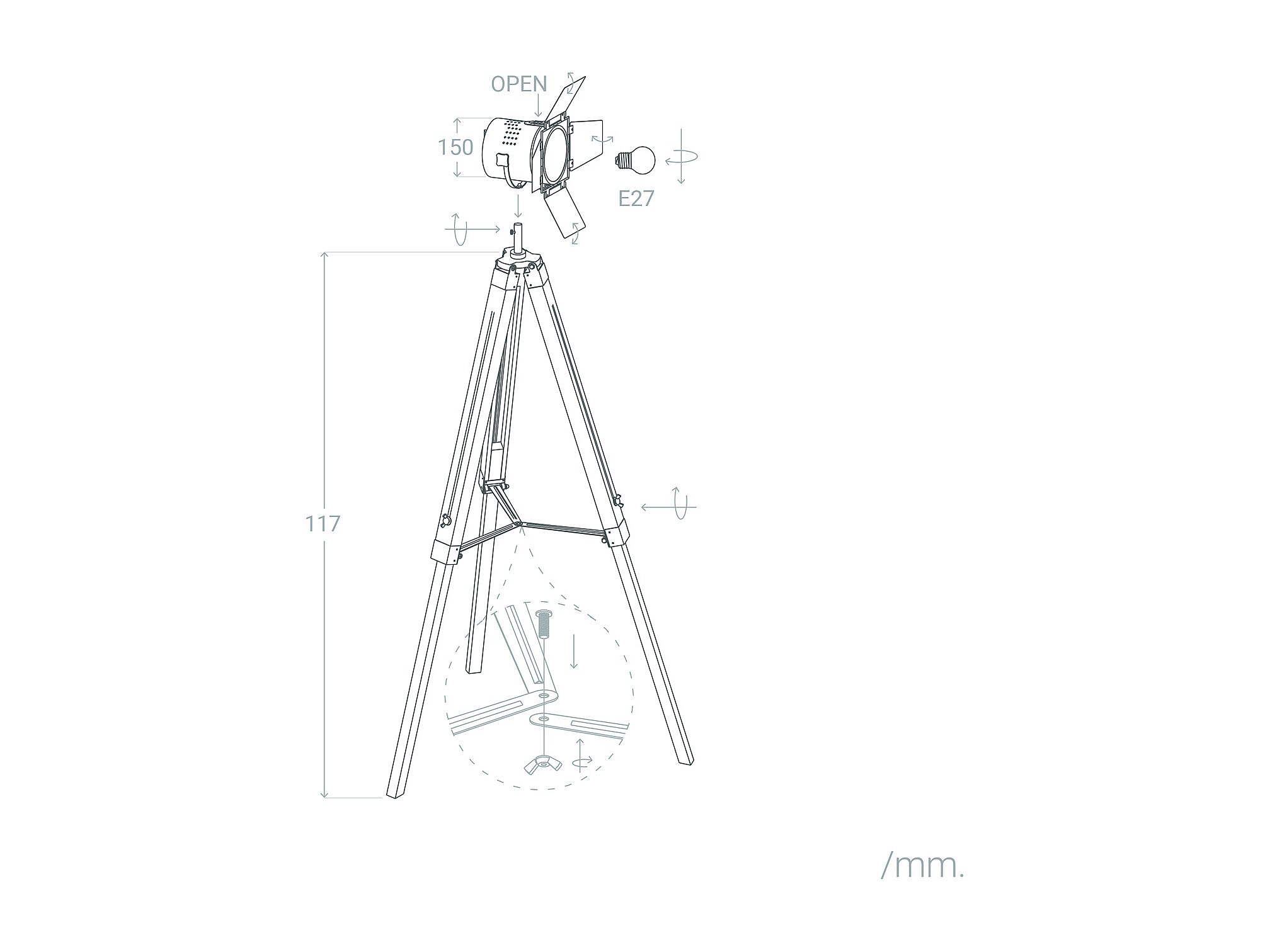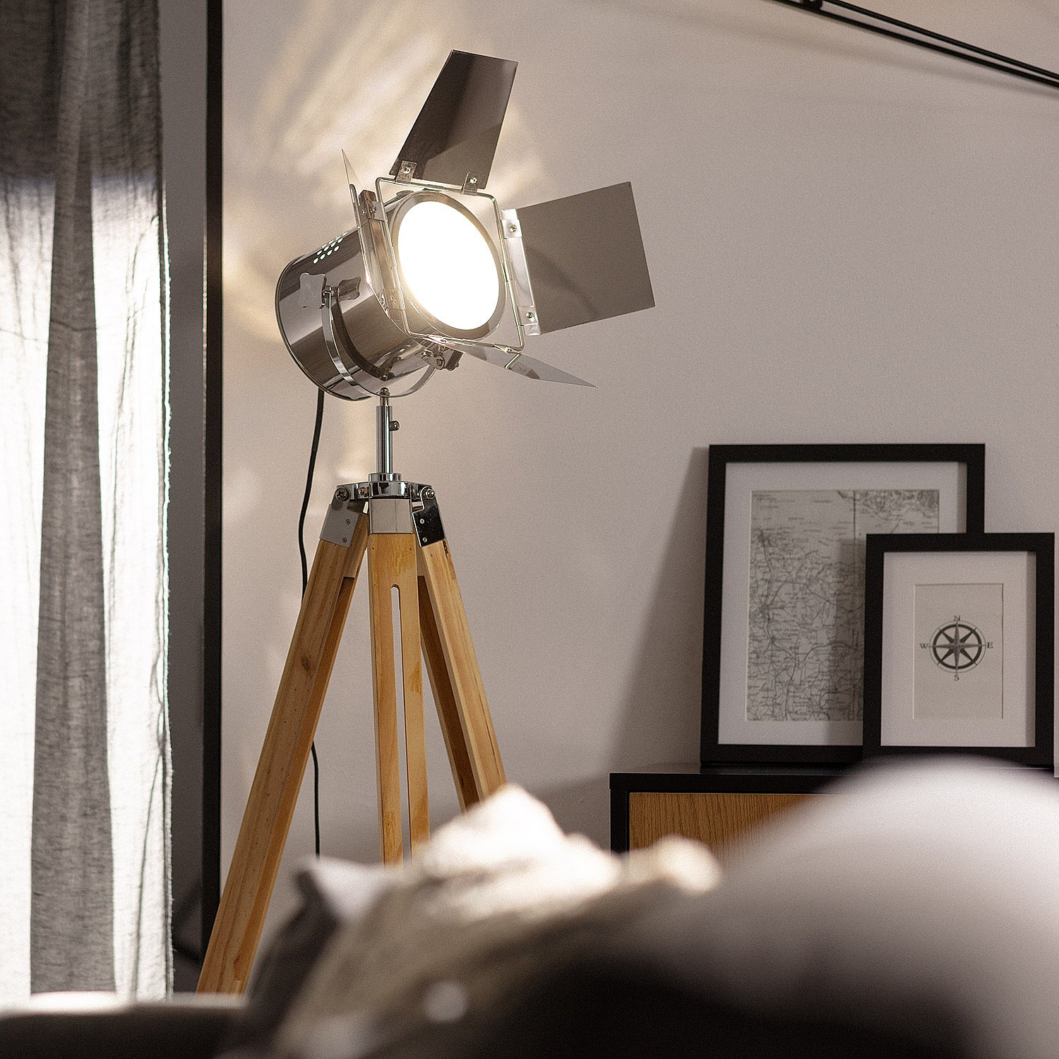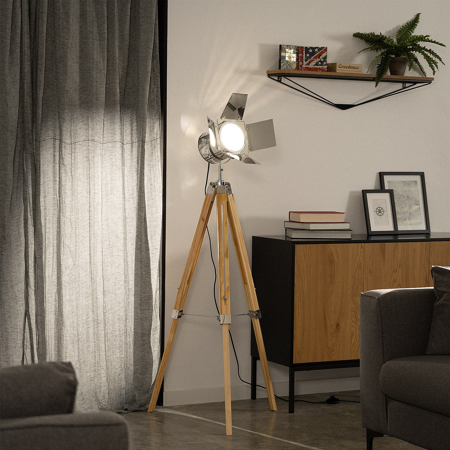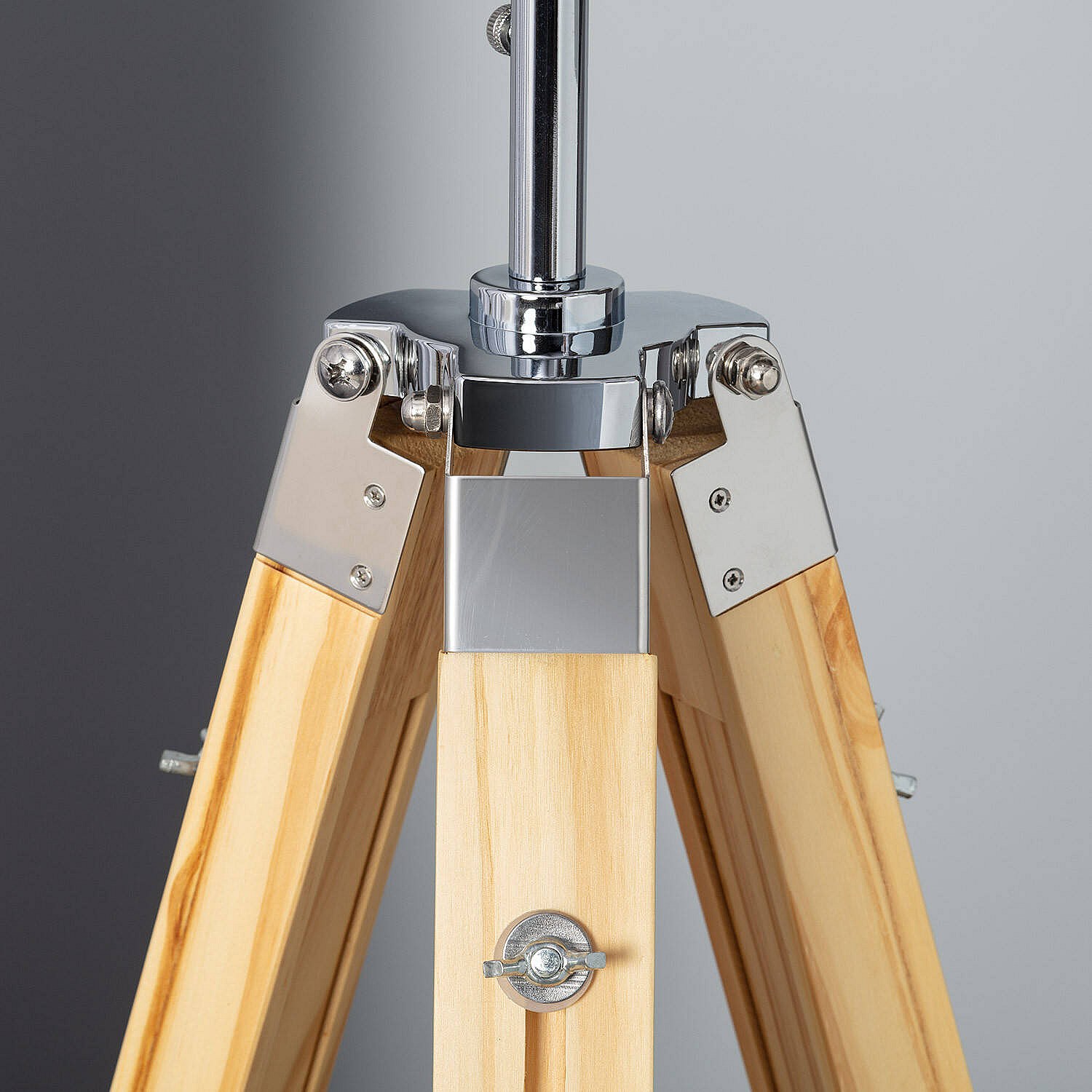 Lampadaire Trépied en Bois et Métal Noir et Doré H 162 cm