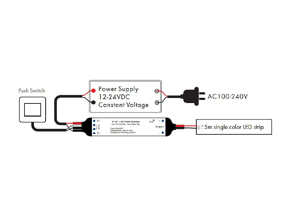 Mini Contrôleur Ruban LED Monochrome 12/24V DC compatible avec Télécommande RF et Bouton-Poussoir Monochrome