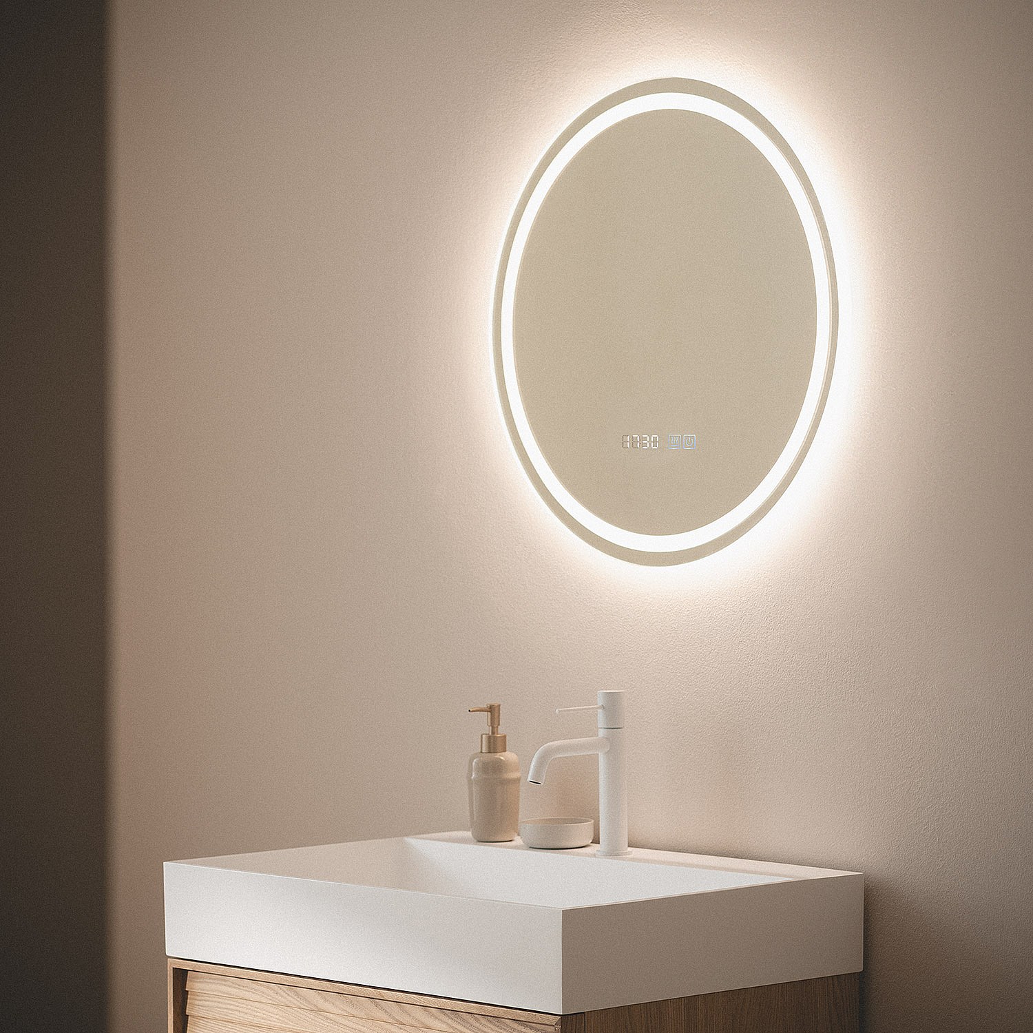 Miroir Salle de Bain avec Éclairage LED Anti-buée Palolem Ø60cm Sélectionnable (chaud-neutre-froid)