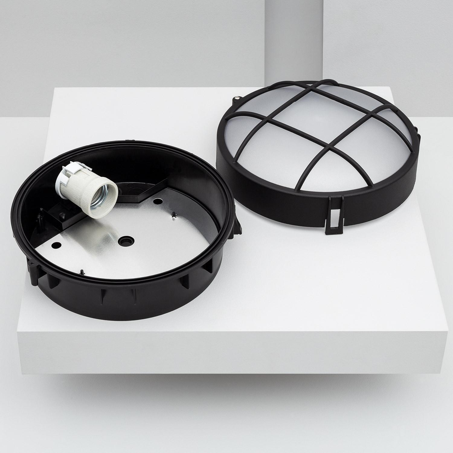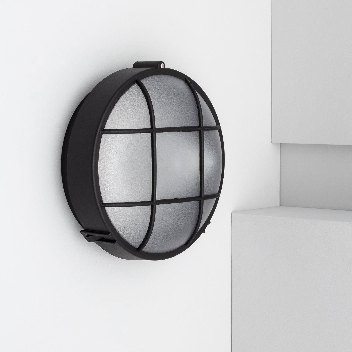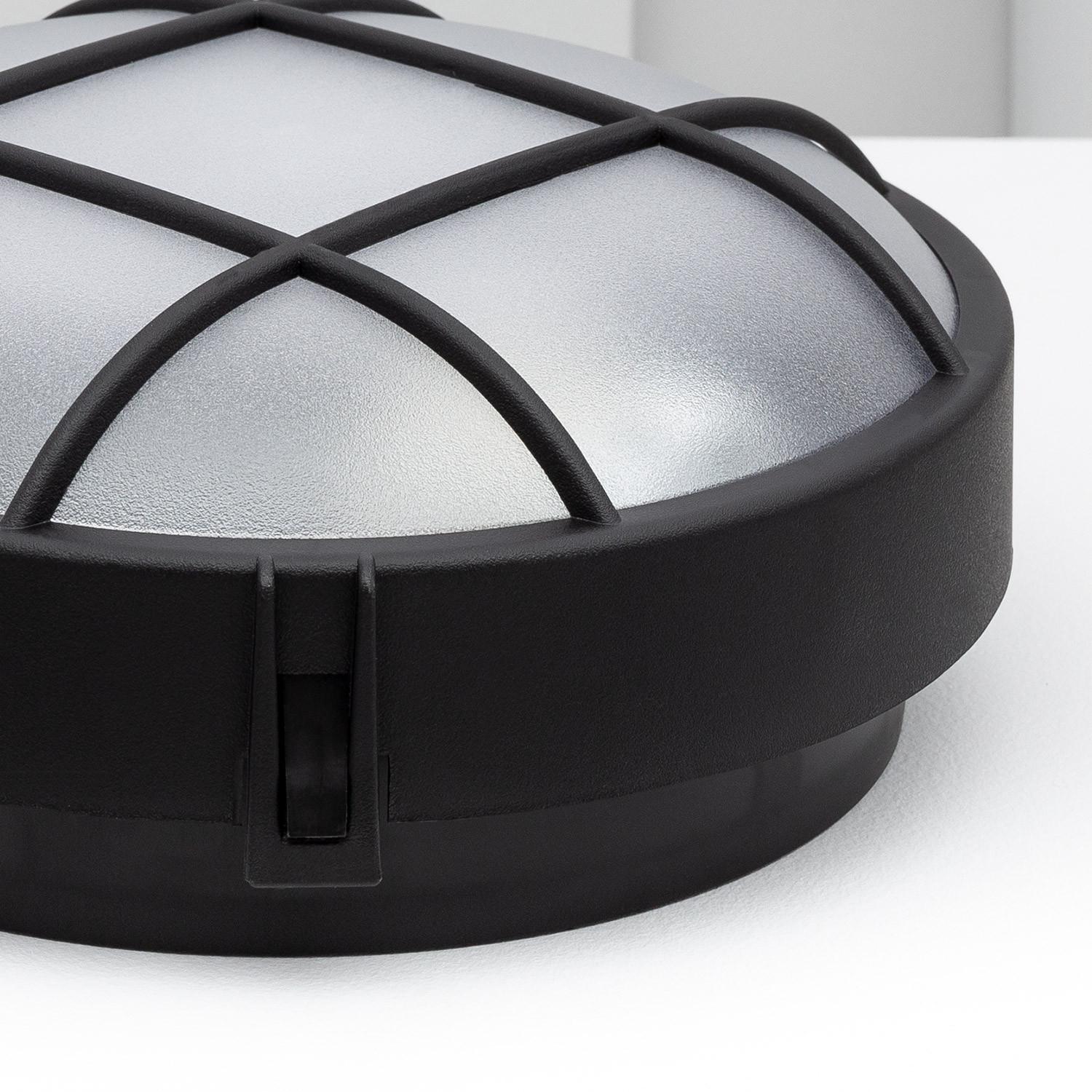 Plafonnier Extérieur Rond à Grille Hublot Ø220 mm Noir