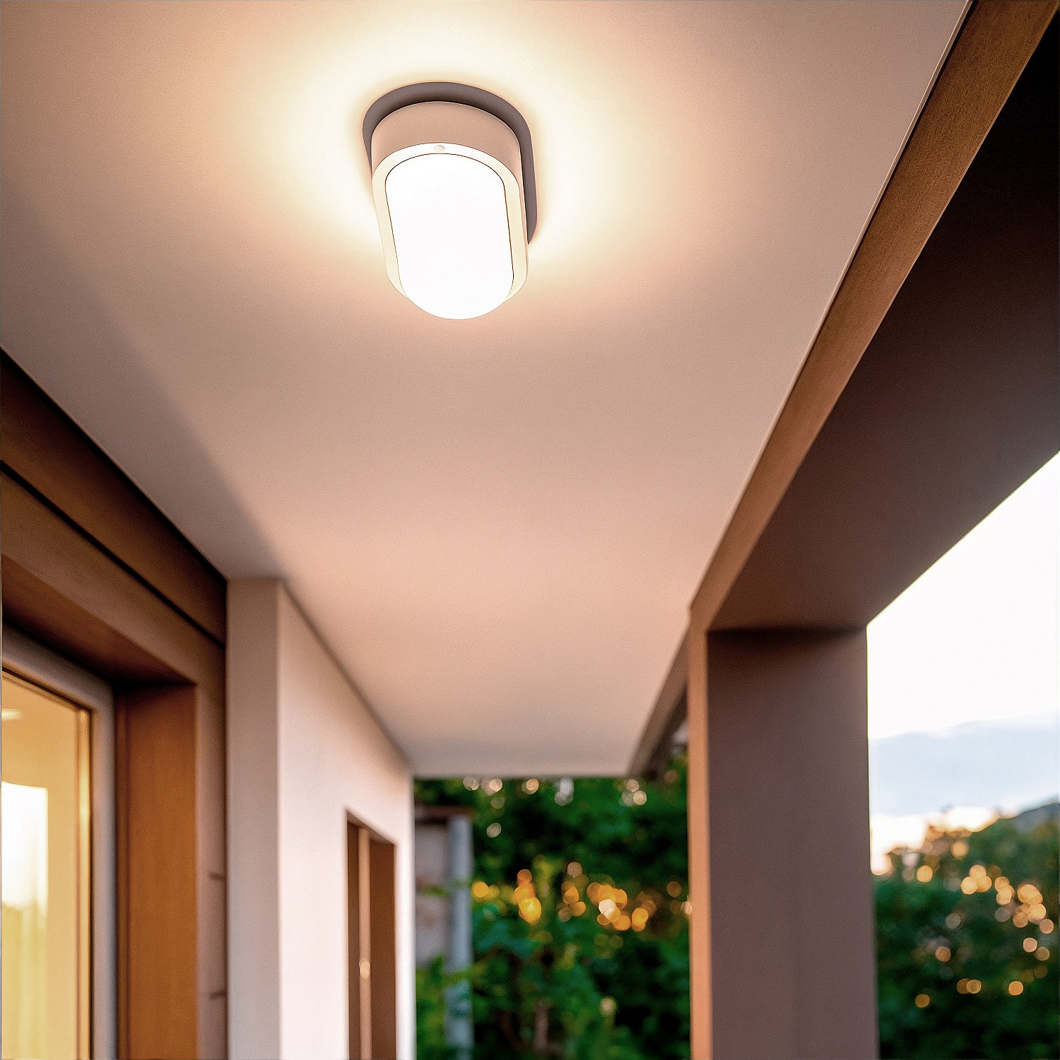 Plafonnier LED Ovale 25W Extérieur 94x198 mm IP65 avec Détecteur de Mouvement et Crépusculaire Hublot White 6500K Blanc froid